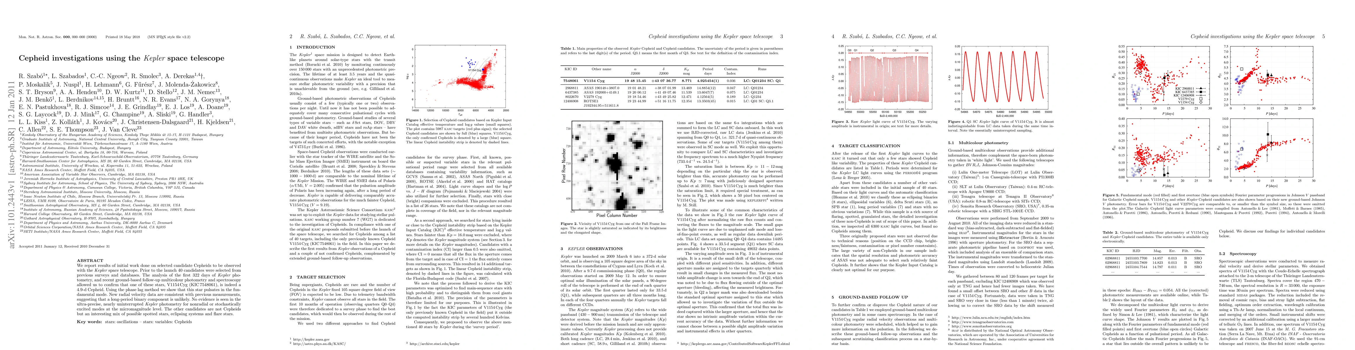 Researchers confirmed that one Cepheid star, V1154 Cyg, is pulsating in its fundamental mode using Kepler space telescope data. Most other candidates were found to be non-Cepheids, such as spotted stars or flare stars.