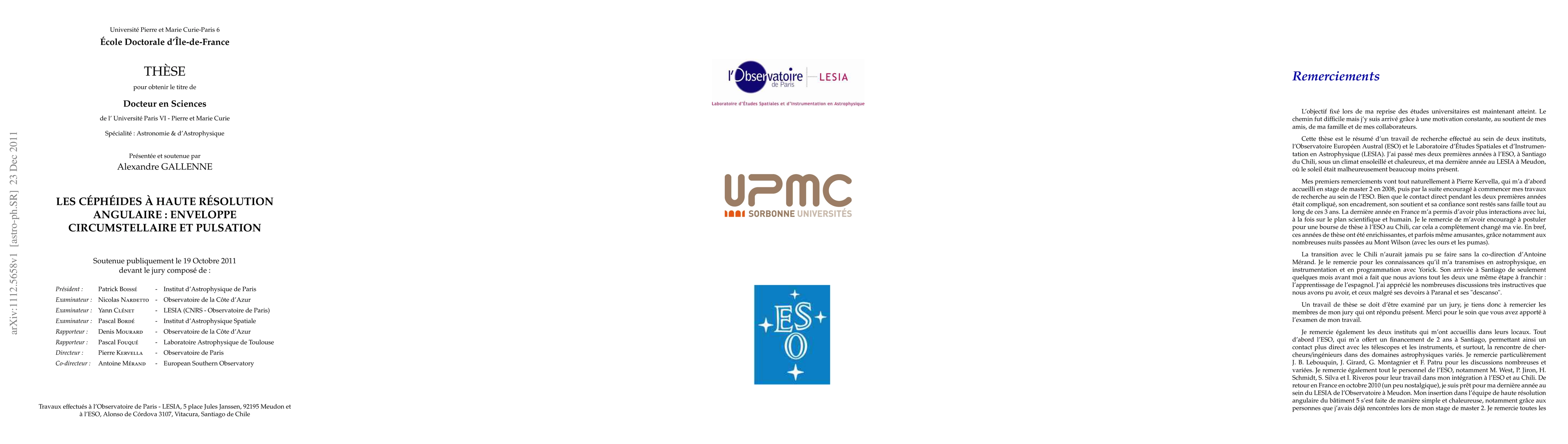 This research paper investigates the circumstellar envelopes (CSE) around Cepheids using high angular resolution techniques, including adaptive optics and interferometry. The study reveals the potential impact of these envelopes on distance estimates and their link to mass loss, employing methods like Baade-Wesselink and Fourier analysis to analyze data from various instruments.