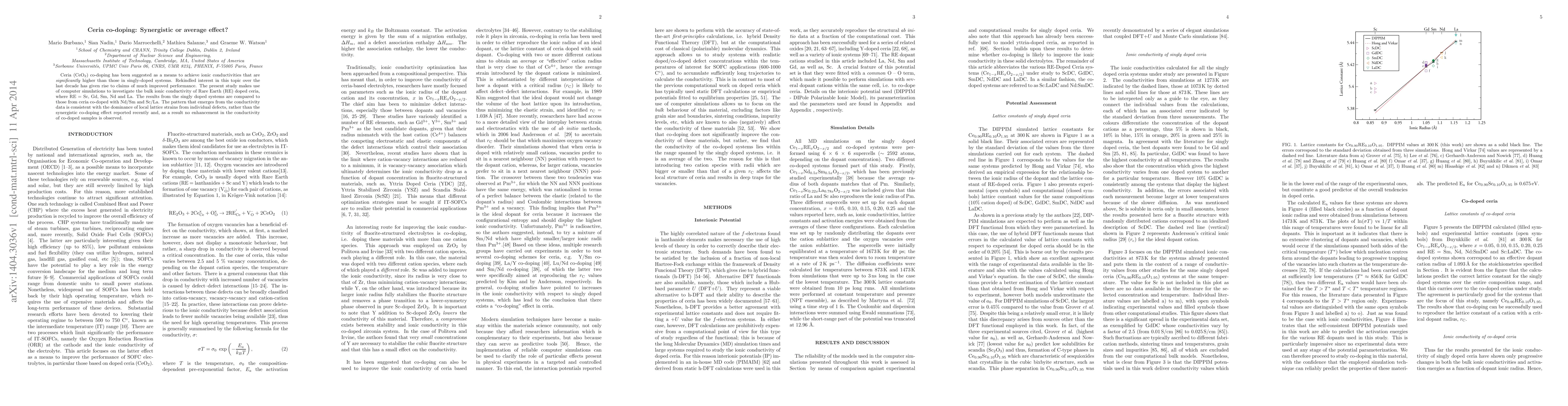 Computer simulations investigate the effect of ceria co-doping with Rare Earth elements on ionic conductivity, finding no enhancement in conductivity compared to singly doped systems.