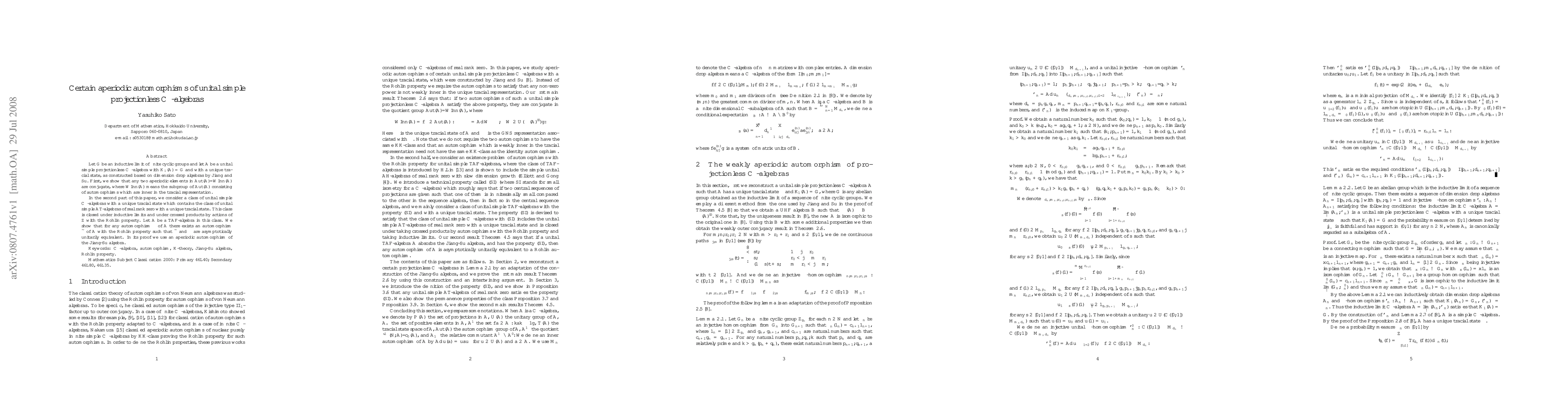Let $G$ be an inductive limit of finite cyclic groups and let $A$ be a unital simple projectionless C*-algebra with $K_1(A) \cong G$ and with a unique tracial state, as constructed based on dimension drop algebras by Jiang and Su. First, we show that any two aperiodic elements in $\Aut(A)/\WInn(A)$ are conjugate, where $\WInn(A)$ means the subgroup of $\Aut(A)$ consisting of automorphisms which are inner in the tracial representation. In the second part of this paper, we consider a class of unital simple C*-algebras with a unique tracial state which contains the class of unital simple AT-algebras of real rank zero with a unique tracial state. This class is closed under inductive limits and under crossed products by actions of $\Z$ with the Rohlin property. Let $A$ be a TAF-algebra in this class. We show that for any automorphism $\alpha$ of $A$ there exists an automorphism $\widetilde{\alpha}$ of $A$ with the Rohlin property such that $\widetilde{\alpha}$ and $\alpha$ are asymptotically unitarily equivalent. In its proof we use an aperiodic automorphism of the Jiang-Su algebra.