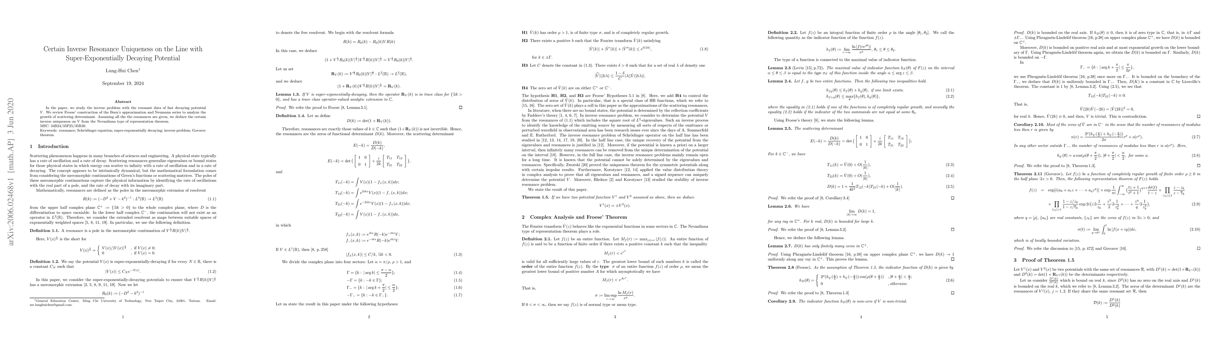 A study on inverse resonance uniqueness in a potential with fast-decaying resonances uses Nevanlinna type representation theorem to prove certain unique solutions for the potential.