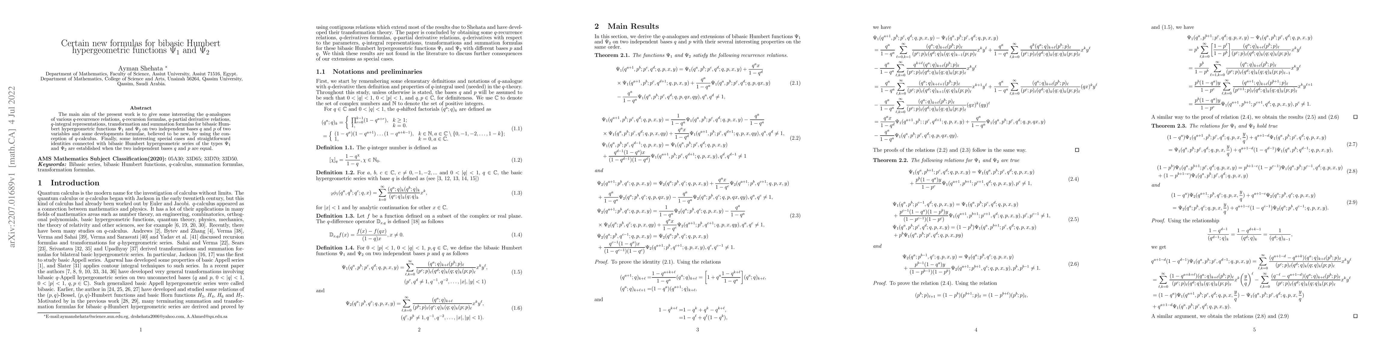 This paper presents novel $q$-analogues and associated formulas, including recurrence relations, recursion formulas, partial derivative relations, integral representations, transformation, and summation formulas for bibasic Humbert hypergeometric functions $\Psi_{1}$ and $\Psi_{2}$. Special cases and identities arise when the two independent bases $q$ and $p$ are equal.