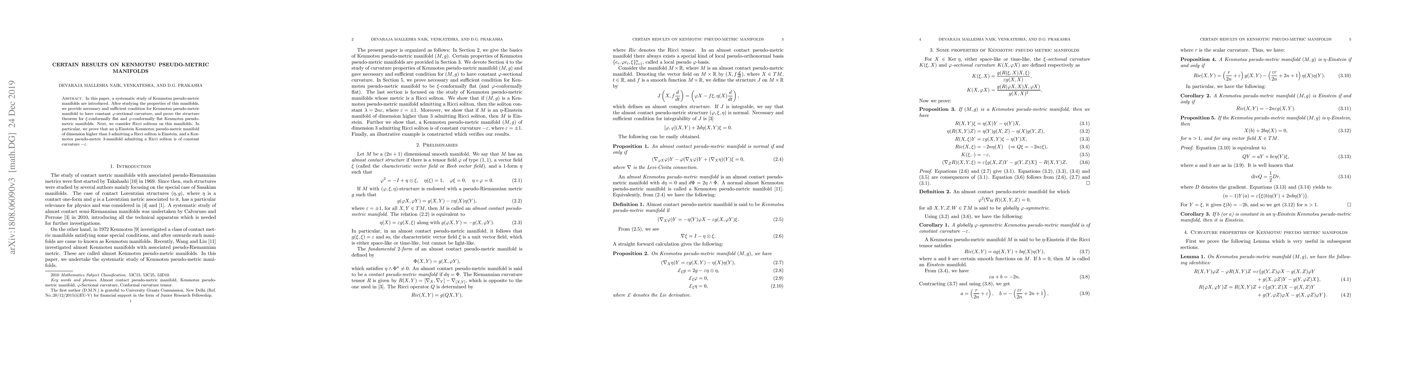This paper systematically explores Kenmotsu pseudo-metric manifolds, establishing conditions for constant $\varphi$-sectional curvature and proving structure theorems for $\xi$-conformally flat and $\varphi$-conformally flat manifolds. It also investigates Ricci solitons, showing that higher-dimensional $\eta$-Einstein manifolds with Ricci solitons are Einstein, and 3-manifolds with Ricci solitons have constant curvature $-\varepsilon$.
