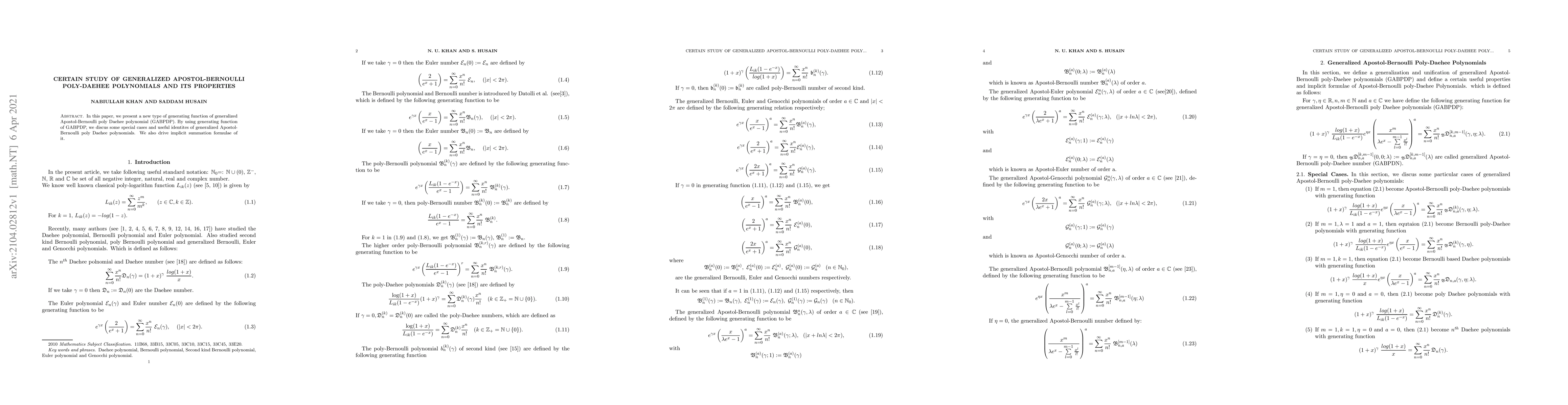 This paper introduces a new generating function for generalized Apostol-Bernoulli poly Daehee polynomials (GABPDP) and explores their special cases, identities, and implicit summation formulae. The study aims to deepen the understanding of these mathematical constructs.