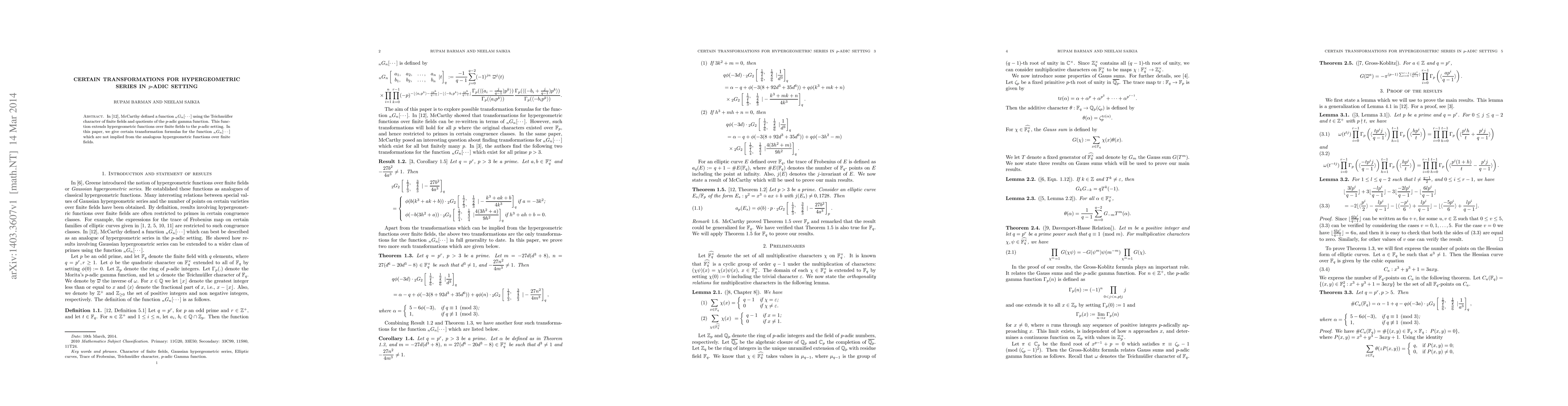 In \cite{mccarthy2}, McCarthy defined a function $_{n}G_{n}[\cdots]$ using the Teichm\"{u}ller character of finite fields and quotients of the $p$-adic gamma function. This function extends hypergeometric functions over finite fields to the $p$-adic setting. In this paper, we give certain transformation formulas for the function $_{n}G_{n}[\cdots]$ which are not implied from the analogous hypergeometric functions over finite fields.