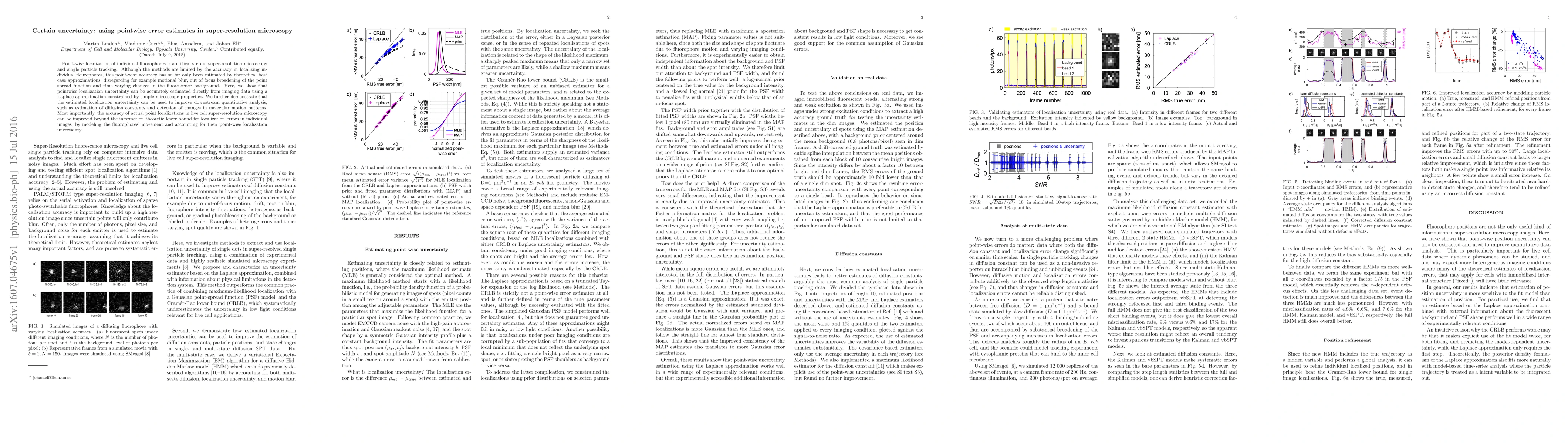 Point-wise localization of individual fluorophores is a critical step in super-resolution microscopy and single particle tracking. Although the methods are limited by the accuracy in localizing individual flourophores, this point-wise accuracy has so far only been estimated by theoretical best case approximations, disregarding for example motional blur, out of focus broadening of the point spread function and time varying changes in the fluorescence background. Here, we show that pointwise localization uncertainty can be accurately estimated directly from imaging data using a Laplace approximation constrained by simple mircoscope properties. We further demonstrate that the estimated localization uncertainty can be used to improve downstream quantitative analysis, such as estimation of diffusion constants and detection of changes in molecular motion patterns. Most importantly, the accuracy of actual point localizations in live cell super-resolution microscopy can be improved beyond the information theoretic lower bound for localization errors in individual images, by modeling the fluorophores' movement and accounting for their point-wise localization uncertainty.