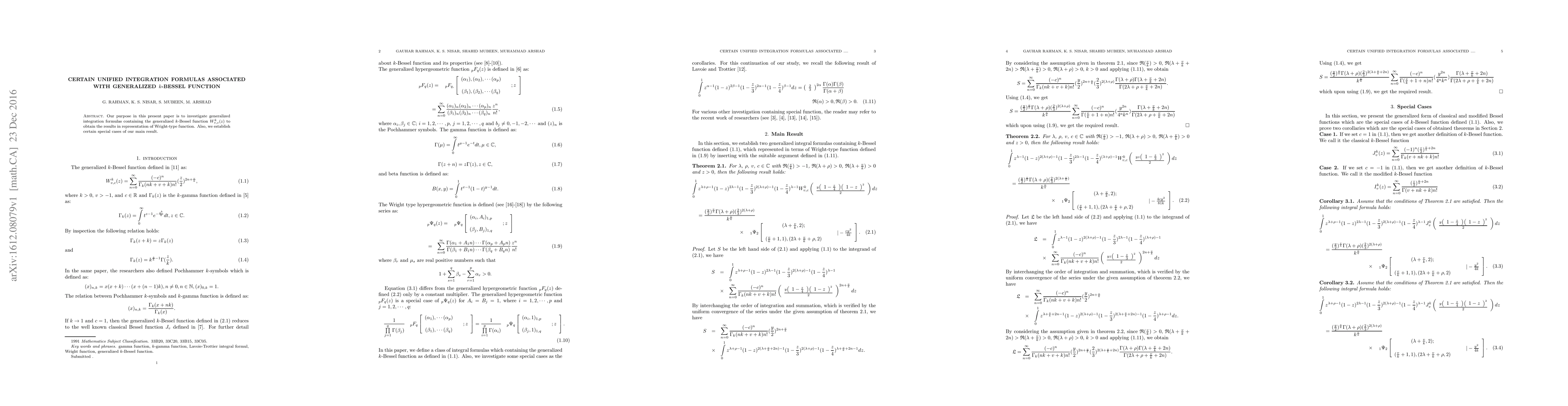 Our purpose in this present paper is to investigate generalized integration formulas containing the generalized $k$-Bessel function $W_{v,c}^{k}(z)$ to obtain the results in representation of Wright-type function. Also, we establish certain special cases of our main result.