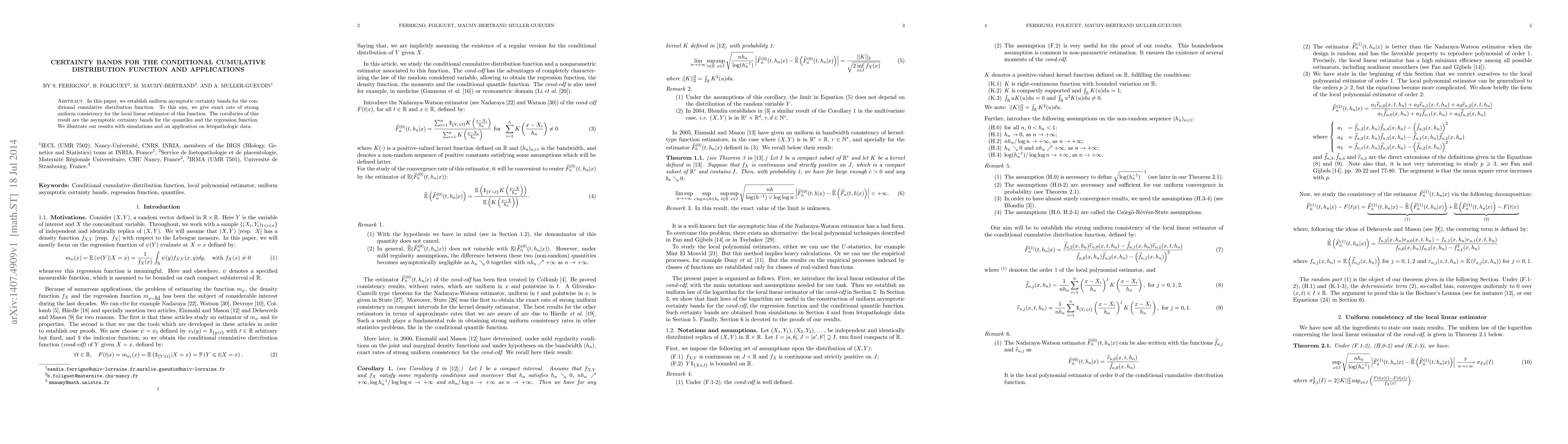 This paper establishes uniform asymptotic certainty bands for the conditional cumulative distribution function, providing exact rates for the strong uniform consistency of the local linear estimator. The findings also yield asymptotic certainty bands for the quantiles and regression function, demonstrated through simulations and an application to fetopathologic data.