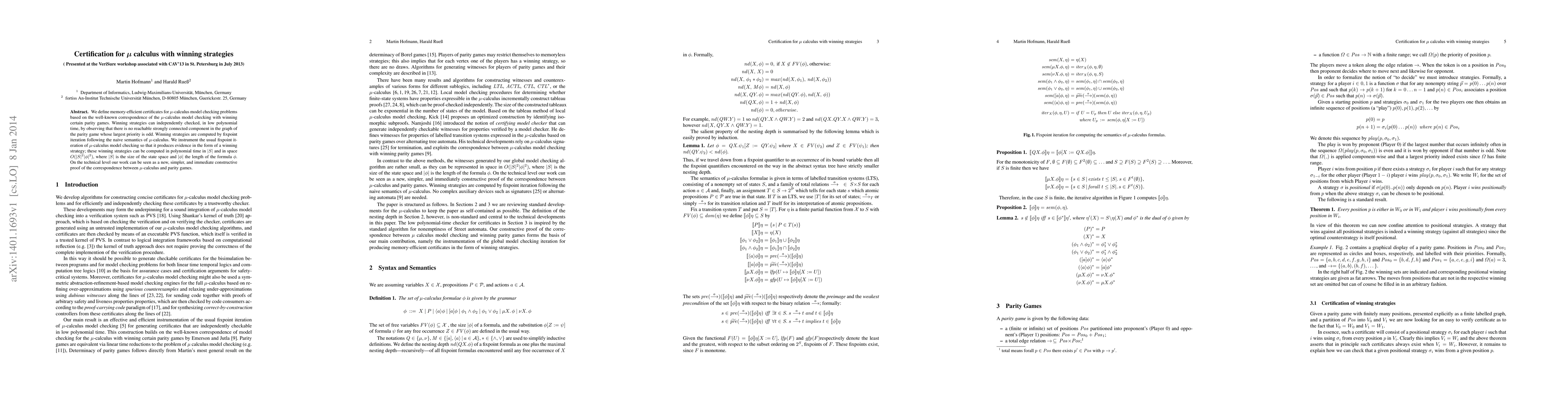 We define memory-efficient certificates for $\mu$-calculus model checking problems based on the well-known correspondence of the $\mu$-calculus model checking with winning certain parity games. Winning strategies can independently checked, in low polynomial time, by observing that there is no reachable strongly connected component in the graph of the parity game whose largest priority is odd. Winning strategies are computed by fixpoint iteration following the naive semantics of $\mu$-calculus. We instrument the usual fixpoint iteration of $\mu$-calculus model checking so that it produces evidence in the form of a winning strategy; these winning strategies can be computed in polynomial time in $|S|$ and in space $O(|S|^2 |{\phi}|^2)$, where $|S|$ is the size of the state space and $|\phi|$ the length of the formula $\phi$\@. The main technical contribution here is the notion and algebra of partial winning strategies. On the technical level our work can be seen as a new, simpler, and immediate constructive proof of the correspondence between $\mu$-calculus and parity games.
