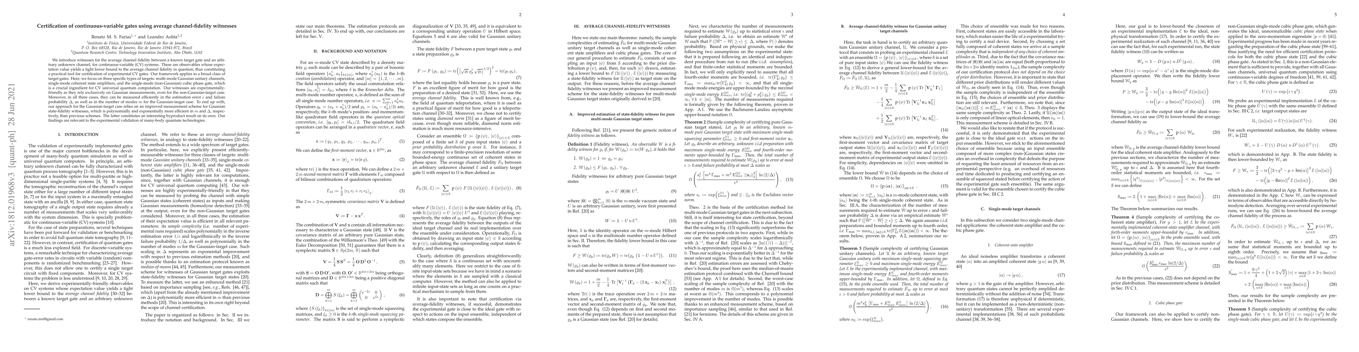 We introduce witnesses for the average channel fidelity between a known target gate and an arbitrary unknown channel, for continuous-variable (CV) systems. These are observables whose expectation value yields a tight lower bound to the average channel fidelity in question, thus constituting a practical tool for certification of experimental CV gates. Our framework applies to a broad class of target gates. Here, we focus on three specific types of targets: multi-mode Gaussian unitary channels, single-mode coherent state amplifiers, and the single-mode (non-Gaussian) cubic phase gate, which is a crucial ingredient for CV universal quantum computation. Our witnesses are experimentally-friendly as they rely exclusively on Gaussian measurements, even for the non-Gaussian-target case. Moreover, in all three cases, they can be measured efficiently in the estimation error $\epsilon$ and failure probability $\Delta$, as well as in the number of modes $m$ for the Gaussian-target case. To end up with, our approach for the Gaussian-target case relies on an improved measurement scheme for Gaussian state-fidelity witnesses, which is polynomially and exponentially more efficient in $m$ and $\Delta$, respectively, than previous schemes. The latter constitutes an interesting byproduct result on its own. Our findings are relevant to the experimental validation of many-body quantum technologies.