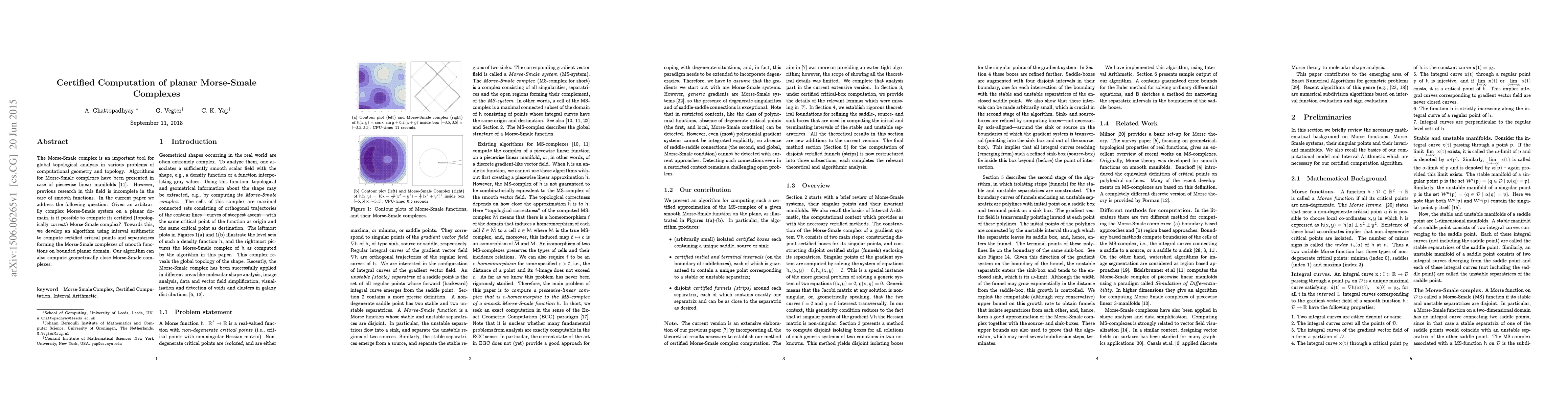 This paper develops an algorithm utilizing interval arithmetic to compute certified Morse-Smale complexes for smooth functions on planar domains, addressing the gap in previous research that focused on piecewise linear manifolds. The algorithm identifies critical points and separatrices with topological correctness.
