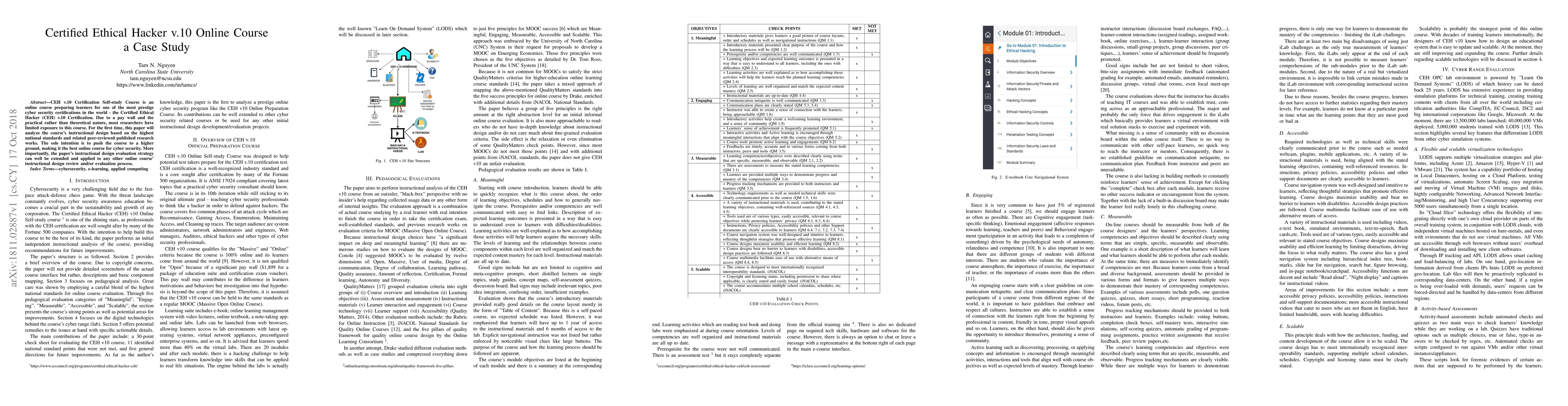 A case study evaluates the Certified Ethical Hacker v.10 Online Course's instructional design against national standards, aiming to improve its effectiveness and provide a model for online course evaluation.
