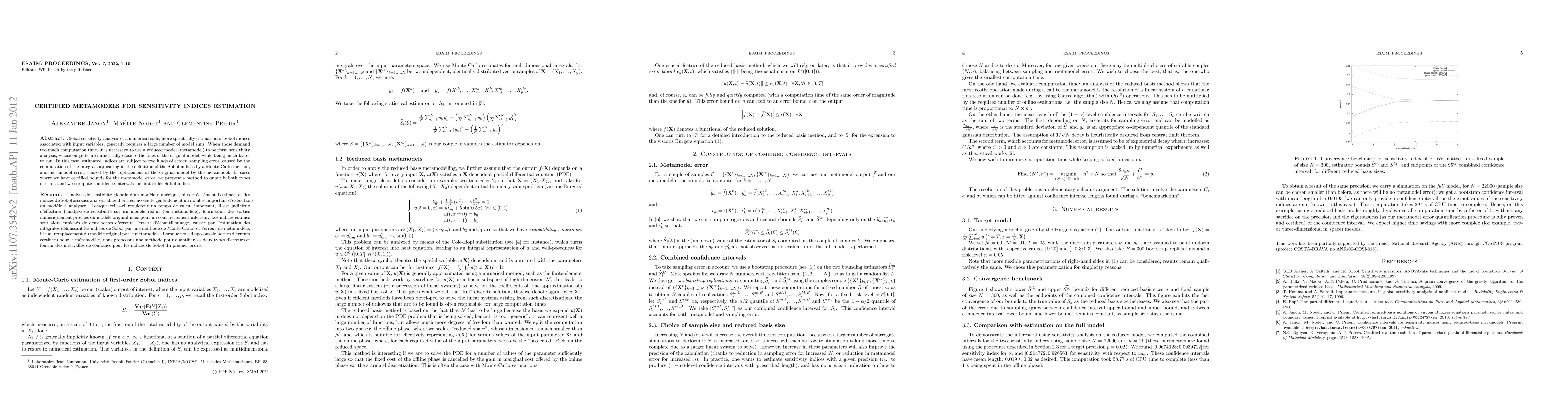 This paper presents a method for estimating Sobol sensitivity indices using certified metamodels to reduce computational costs. It quantifies both sampling and metamodel errors, providing confidence intervals for the first-order indices when certified bounds for the metamodel error are available.