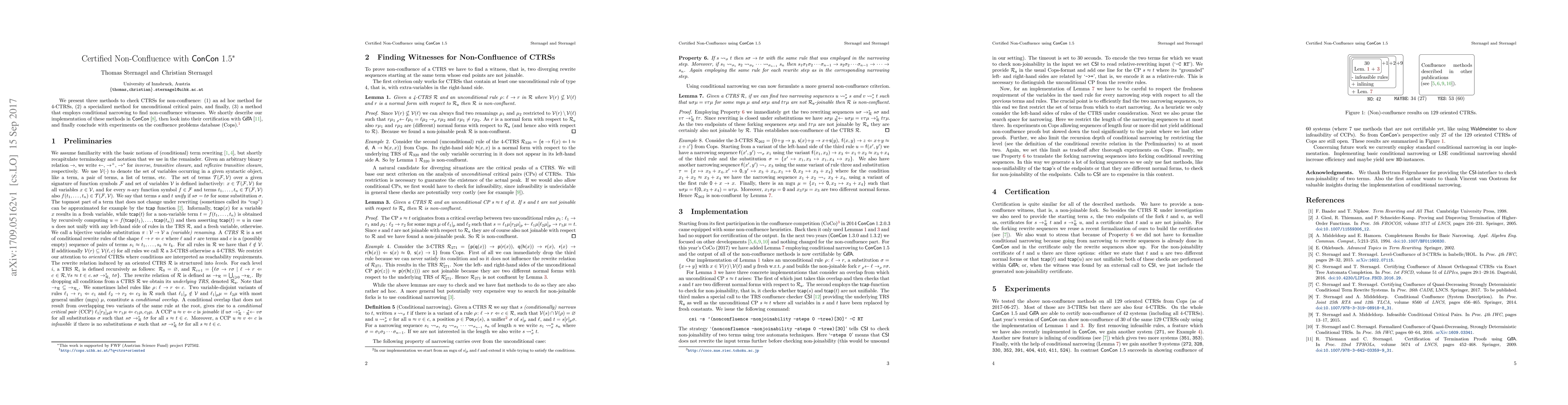 This paper introduces three methods to verify non-confluence in Context-Free Term Rewriting Systems (CTRSs) and details their implementation in the ConCon tool. It concludes with certification using CeTA and evaluation on the Cops database.