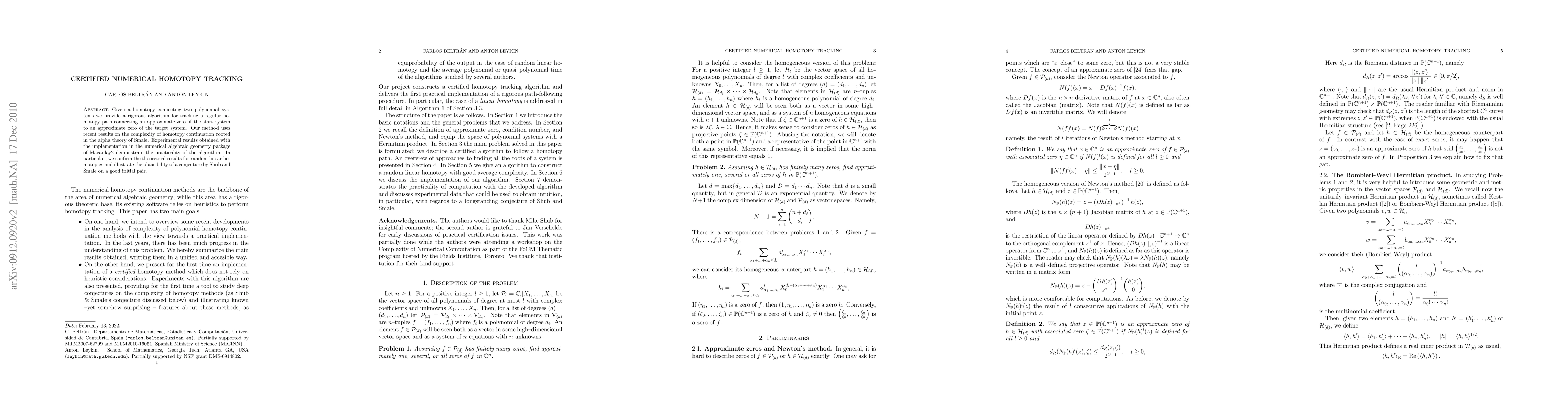 This paper presents a rigorous algorithm for tracking regular homotopy paths between approximate zeros of two polynomial systems, leveraging complexity results from Smale's alpha theory. Experimental results in Macaulay2 validate the algorithm's practicality and support a conjecture by Shub and Smale regarding good initial pairs.