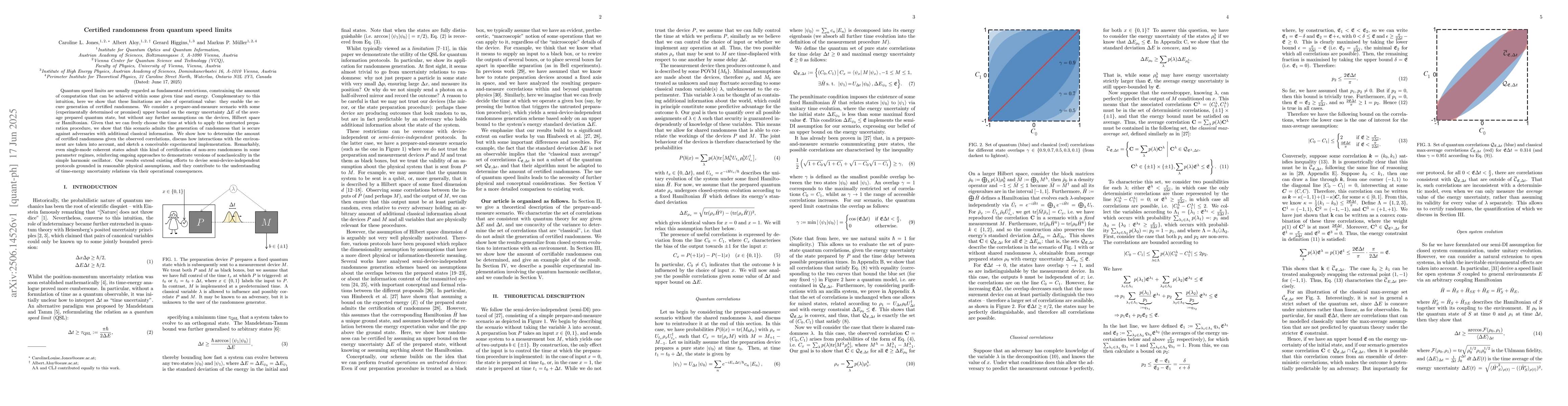 This research demonstrates that quantum speed limits can be used to securely generate certified randomness, even with limited device assumptions. It shows how energy uncertainty bounds can create randomness secure against adversaries with extra classical info, applicable to simple systems like coherent states, and contributes to understanding time-energy uncertainty relations.