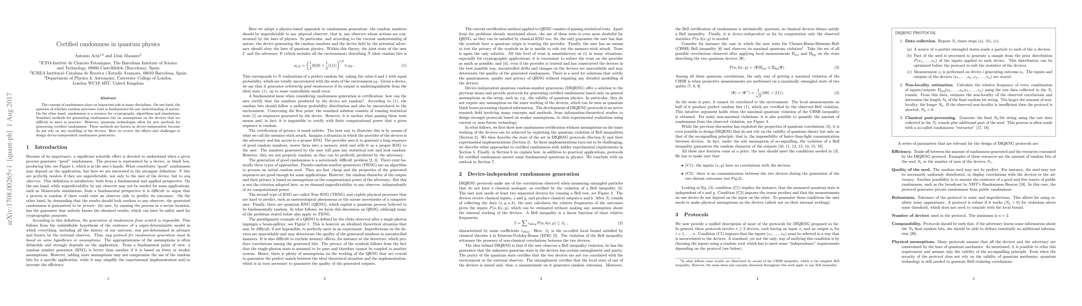 This paper explores the generation of certified randomness through quantum technologies, emphasizing device-independent methods that do not rely on device modeling. It reviews the efforts and challenges in developing these advanced randomness generators for applications in cryptography and simulations.