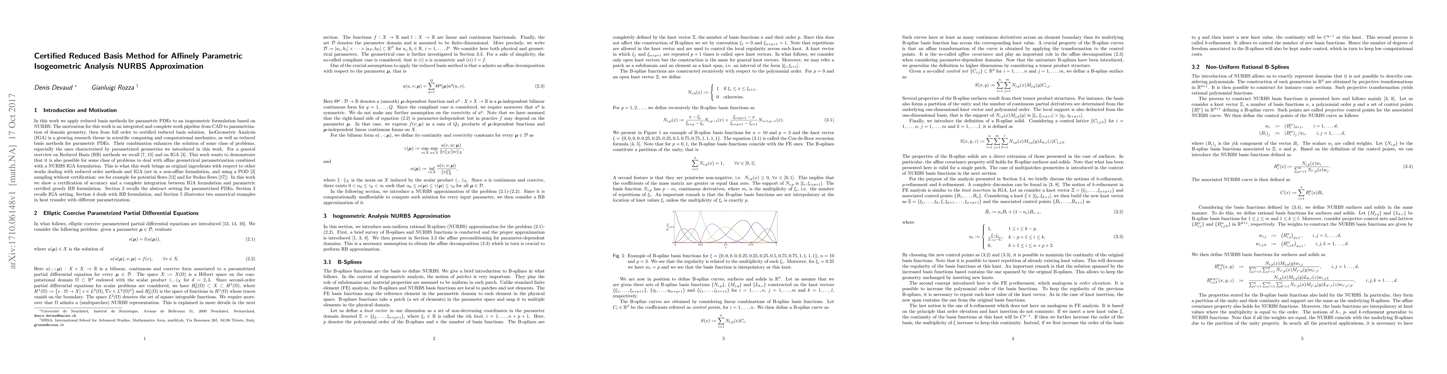 This paper applies reduced basis methods to an isogeometric analysis (IGA) framework based on NURBS, aiming to integrate CAD geometry parametrization with parametric PDE solutions. It demonstrates a certified reduced basis method for affinely parametric problems, showcasing accuracy certification and seamless integration between IGA and reduced order methods.