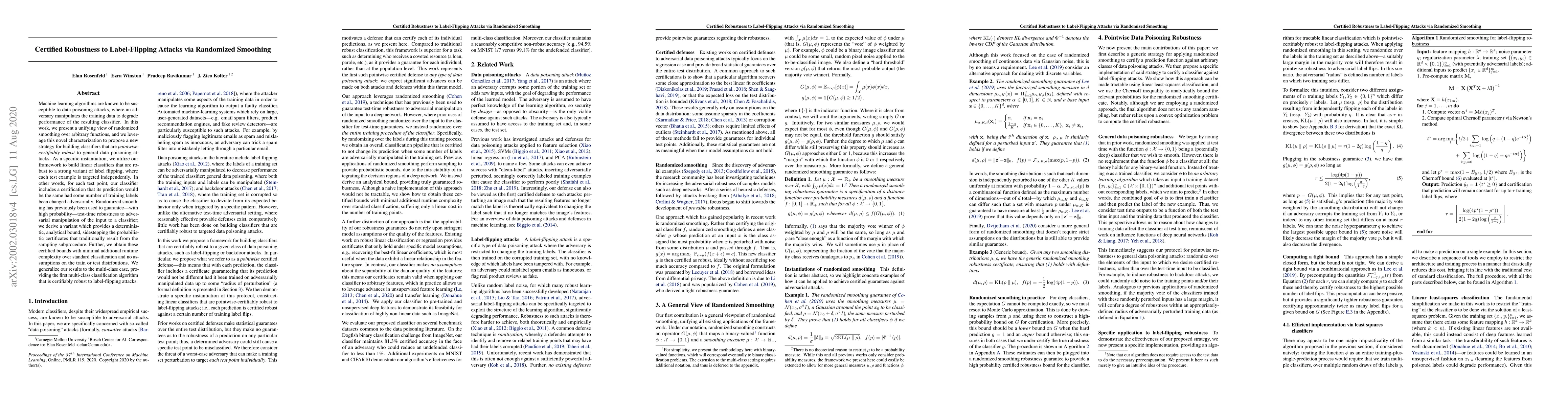 The main technical contribution of this work is the development of a randomized smoothing approach for estimating robustness to label flipping attacks.