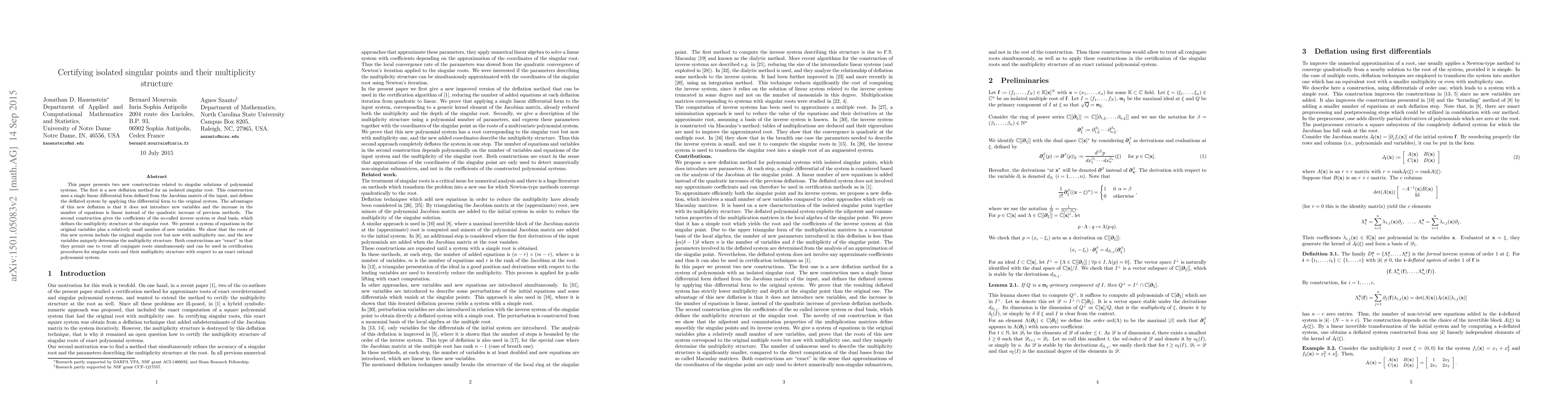 This paper presents two new constructions related to singular solutions of polynomial systems. The first is a new deflation method for an isolated singular root. This construc-tion uses a single linear differential form defined from the Jacobian matrix of the input, and defines the deflated system by applying this differential form to the original system. The advantages of this new deflation is that it does not introduce new variables and the increase in the number of equations is linear instead of the quadratic increase of previous methods. The second construction gives the coefficients of the so-called inverse system or dual basis, which defines the multiplicity structure at the singular root. We present a system of equations in the original variables plus a relatively small number of new vari-ables. We show that the roots of this new system include the original singular root but now with multiplicity one, and the new variables uniquely determine the multiplicity structure. Both constructions are "exact", meaning that they permit one to treat all conjugate roots simultaneously and can be used in certification procedures for singular roots and their multiplicity structure with respect to an exact rational polynomial system.