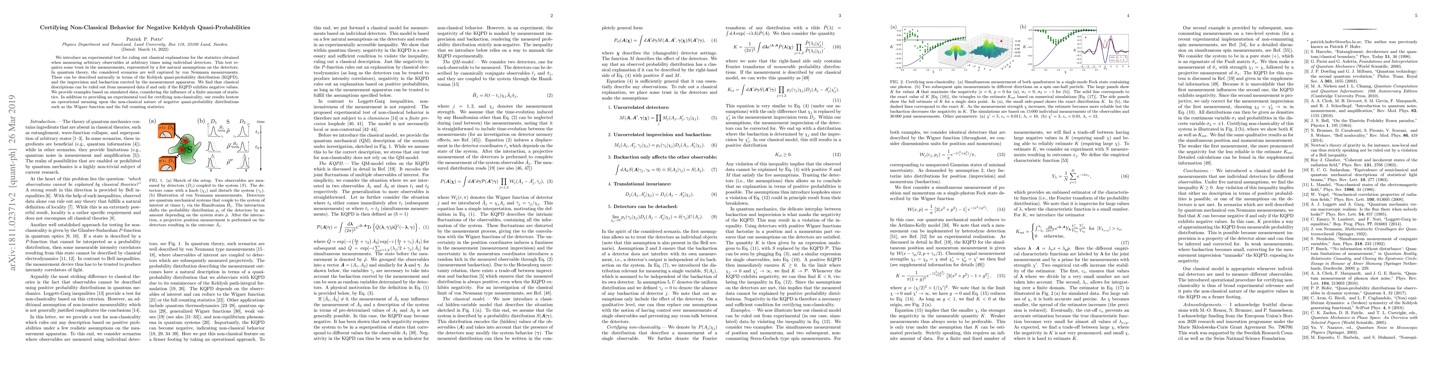 We introduce an experimental test for ruling out classical explanations for the statistics obtained when measuring arbitrary observables at arbitrary times using individual detectors. This test requires some trust in the measurements, represented by a few natural assumptions on the detectors. In quantum theory, the considered scenarios are well captured by von Neumann measurements. These can be described naturally in terms of the Keldysh quasi-probability distribution (KQPD), and the imprecision and backaction exerted by the measurement apparatus. We find that classical descriptions can be ruled out from measured data if and only if the KQPD exhibits negative values. We provide examples based on simulated data, considering the influence of a finite amount of statistics. In addition to providing an experimental tool for certifying non-classicality, our results bestow an operational meaning upon the non-classical nature of negative quasi-probability distributions such as the Wigner function and the full counting statistics.
