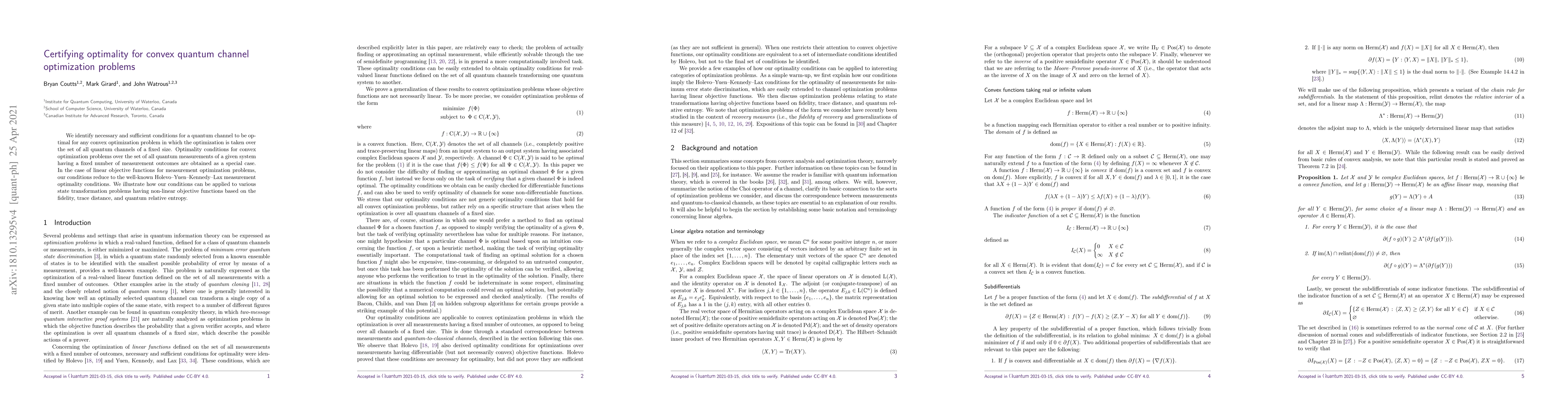 A research paper finds necessary and sufficient conditions for a quantum channel to be optimal in convex optimization problems over all possible channels of a fixed size. These conditions can be applied to various state transformation problems with non-linear objective functions.