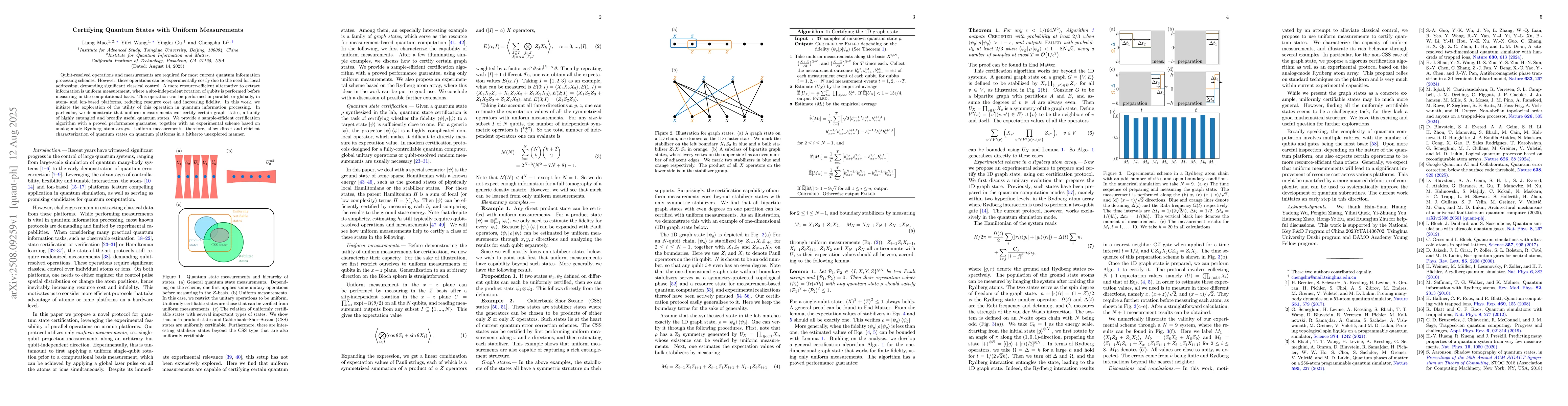 Qubit-resolved operations and measurements are required for most current quantum information processing schemes. However, these operations can be experimentally costly due to the need for local addressing, demanding significant classical control. A more resource-efficient alternative to extract information is uniform measurement, where a site-independent rotation of qubits is performed before measuring in the computational basis. This operation can be performed in parallel, or globally, in atom- and ion-based platforms, reducing resource cost and increasing fidelity. In this work, we initiate the exploration of the utility of this operation in quantum information processing. In particular, we demonstrate that uniform measurements can certify certain graph states, a family of highly entangled and broadly useful quantum states. We provide a sample-efficient certification algorithm with a proved performance guarantee, together with an experimental scheme based on analog-mode Rydberg atom arrays. Uniform measurements, therefore, allow direct and efficient characterization of quantum states on quantum platforms in a hitherto unexplored manner.