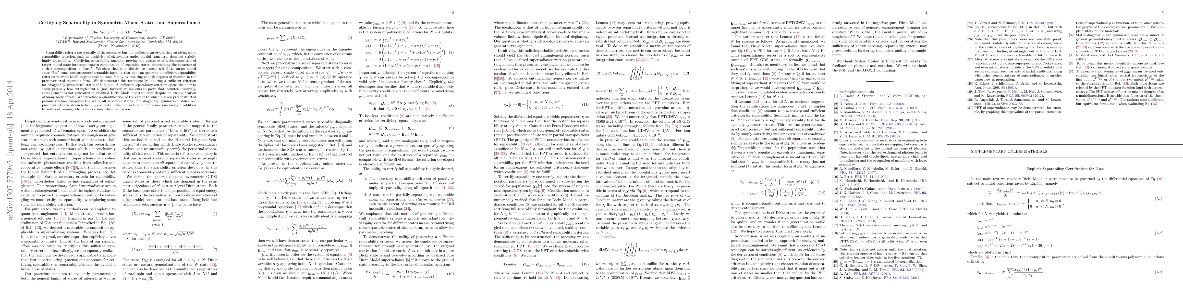 Separability criteria are typically of the necessary, but not sufficient, variety, in that satisfying some separability criterion, such as positivity of eigenvalues under partial transpose, does not strictly imply separability. Certifying separability amounts to proving the existence of a decomposition of a target mixed state into some convex combination of separable states; determining the existence of such a decomposition is "hard." We show that it is effective to ask, instead, if the target mixed state "fits" some preconstructed separable form, in that one can generate a sufficient separability criterion relevant to all target states in some family by ensuring enough degrees of freedom in the preconstructed separable form. We demonstrate this technique by inducing a sufficient criterion for "diagonally symmetric" states of N qubits. A sufficient separability criterion opens the door to study precisely how entanglement is (not) formed; we use ours to prove that, counterintuitively, entanglement is not generated in idealized Dicke model superradiance despite its exemplification of many-body effects. We introduce a quantification of the extent to which a given preconstructed parametrization comprises the set of all separable states; for "diagonally symmetric" states our preconstruction is shown to be fully complete. This implies that our criterion is necessary in addition to sufficient, among other ramifications which we explore.