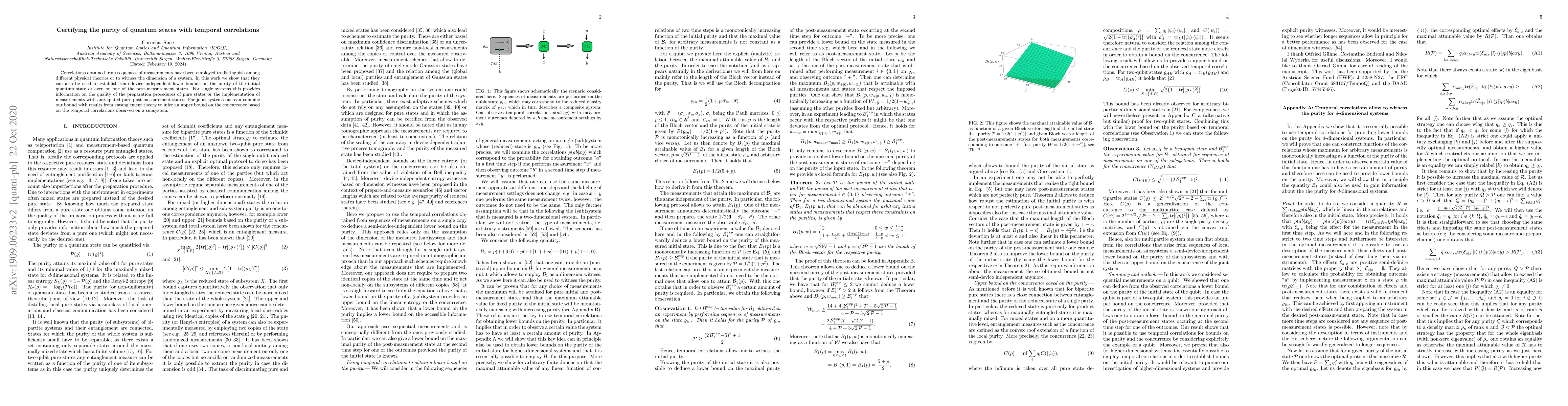 This paper demonstrates how temporal correlations from measurement sequences can establish semi-device independent lower bounds on the purity of quantum states. It also shows how these correlations can infer an upper bound on the concurrence of joint systems, combining with entanglement theory.