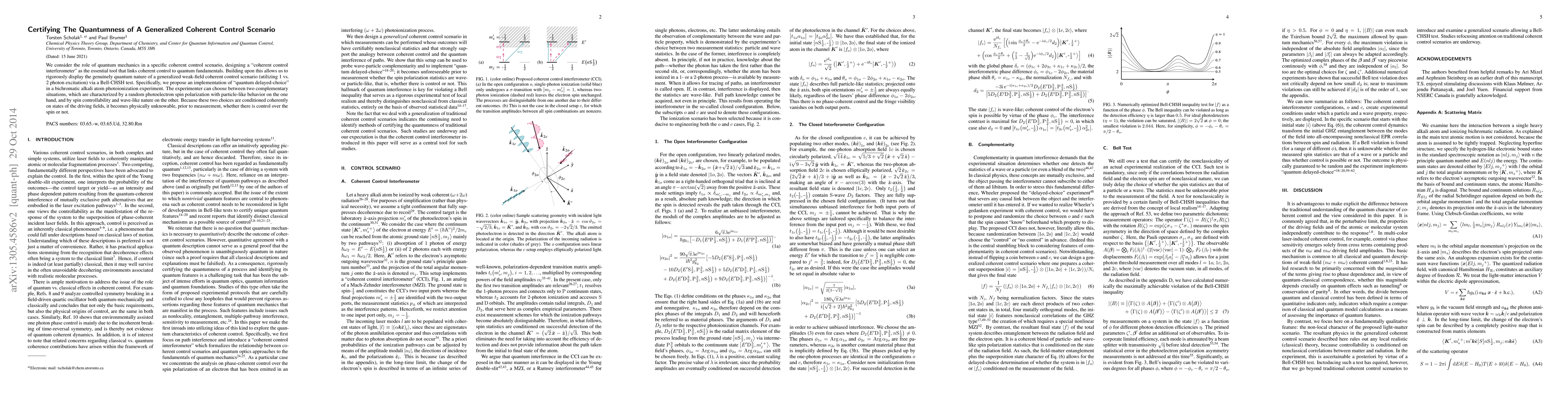 We consider the role of quantum mechanics in a specific coherent control scenario, designing a "coherent control interferometer" as the essential tool that links coherent control to quantum fundamentals. Building upon this allows us to rigorously display the genuinely quantum nature of a generalized weak-field coherent control scenario (utilizing 1 vs. 2 photon excitation) via a Bell-CHSH test. Specifically, we propose an implementation of "quantum delayed-choice" in a bichromatic alkali atom photoionization experiment. The experimenter can choose between two complementary situations, which are characterized by a random photoelectron spin polarization with particle-like behaviour on the one hand, and by spin controllability and wave-like nature on the other. Because these two choices are conditioned coherently on states of the driving fields, it becomes physically unknowable, prior to measurement, whether there is control over the spin or not.
