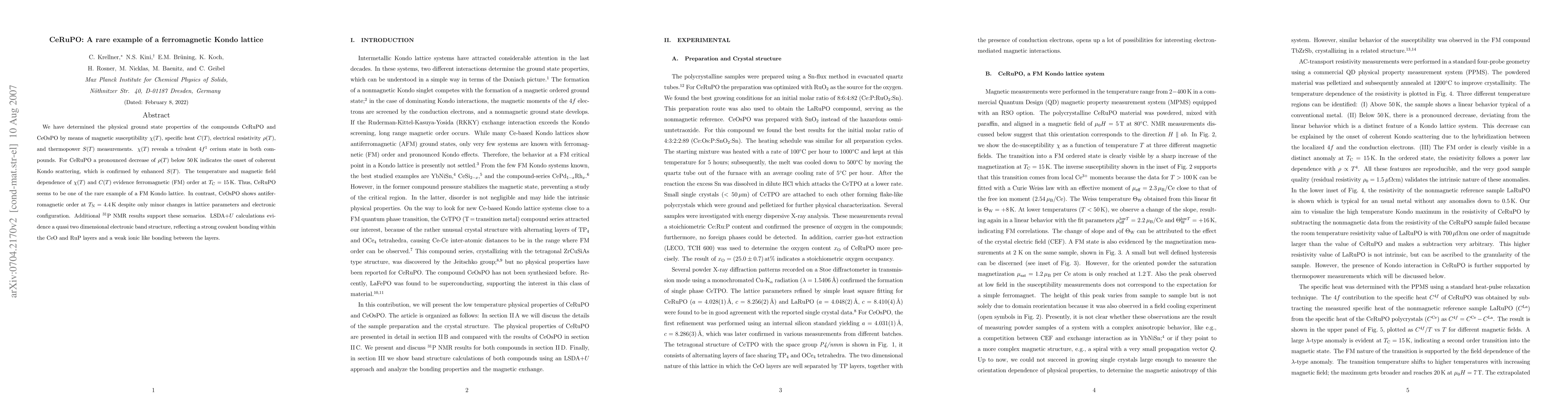 We have determined the physical ground state properties of the compounds CeRuPO and CeOsPO by means of magnetic susceptibility chi(T), specific heat C(T), electrical resistivity rho(T), and thermopower S(T) measurements. chi(T) reveals a trivalent 4f1 cerium state in both compounds. For CeRuPO a pronounced decrease of rho(T) below 50K indicates the onset of coherent Kondo scattering which is confirmed by enhanced S(T). The temperature and magnetic field dependence of chi(T) and C(T) evidence ferromagnetic (FM) order at TC=15K. Thus, CeRuPO seems to be one of the rare example of a FM Kondo lattice. In contrast, CeOsPO shows antiferromagnetic order at TN=4.4K despite only minor changes in lattice parameters and electronic configuration. Additional 31P NMR results support these scenarios. LSDA+U calculations evidence a quasi two dimensional electronic band structure, reflecting a strong covalent bonding within the CeO and RuP layers and a weak ionic like bonding between the layers.
