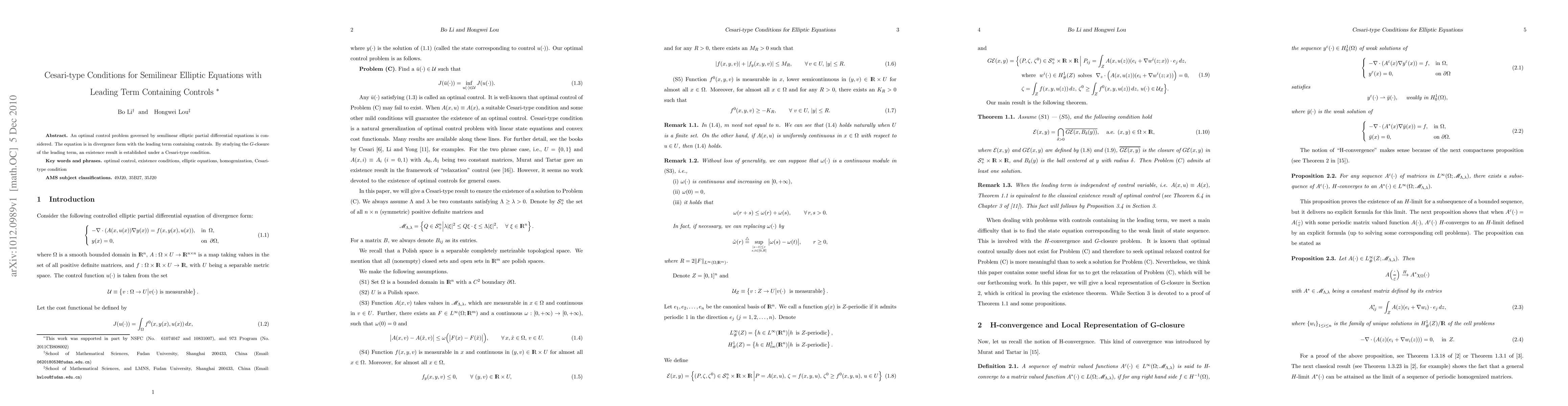 An optimal control problem governed by semilinear elliptic partial differential equations is considered. The equation is in divergence form with the leading term containing controls. By studying the $G$-closure of the leading term, an existence result is established under a Cesari-type condition.