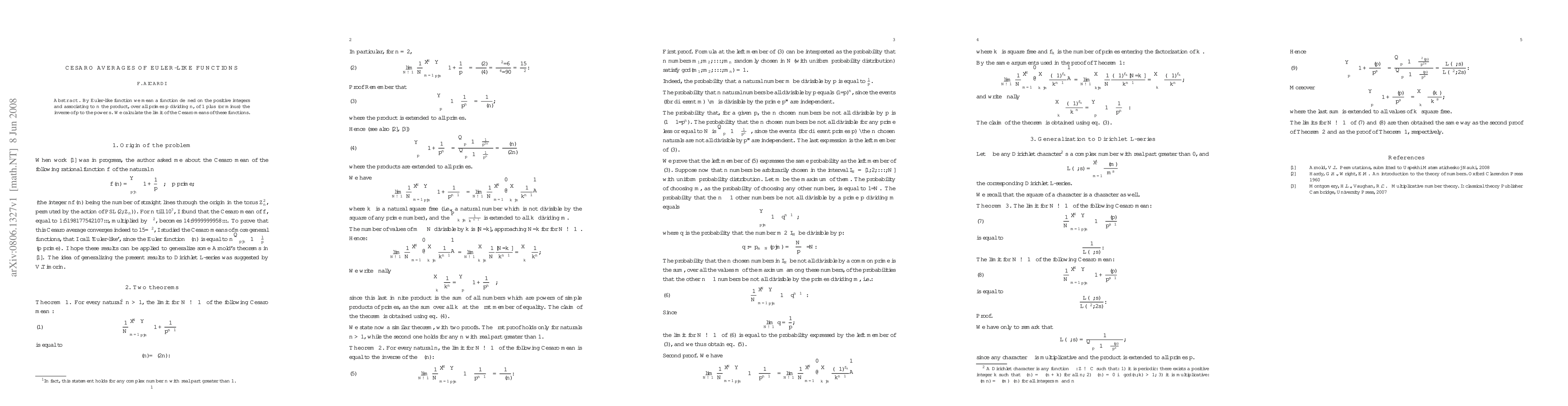 This paper investigates Euler-like functions defined on positive integers, calculating the limit of their Cesaro averages. The results provide insights into the behavior of these functions as their averages converge.