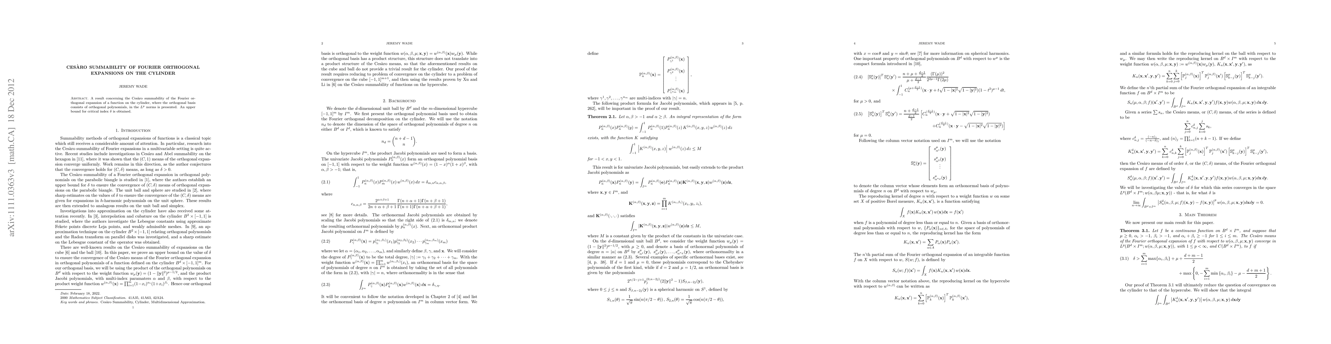 A result concerning the Ces\`aro summability of the Fourier orthogonal expansion of a function on the cylinder, where the orthogonal basis consists of orthogonal polynomials, in the $L^p$ norms is presented. An upper bound for critical index $\delta$ is obtained.