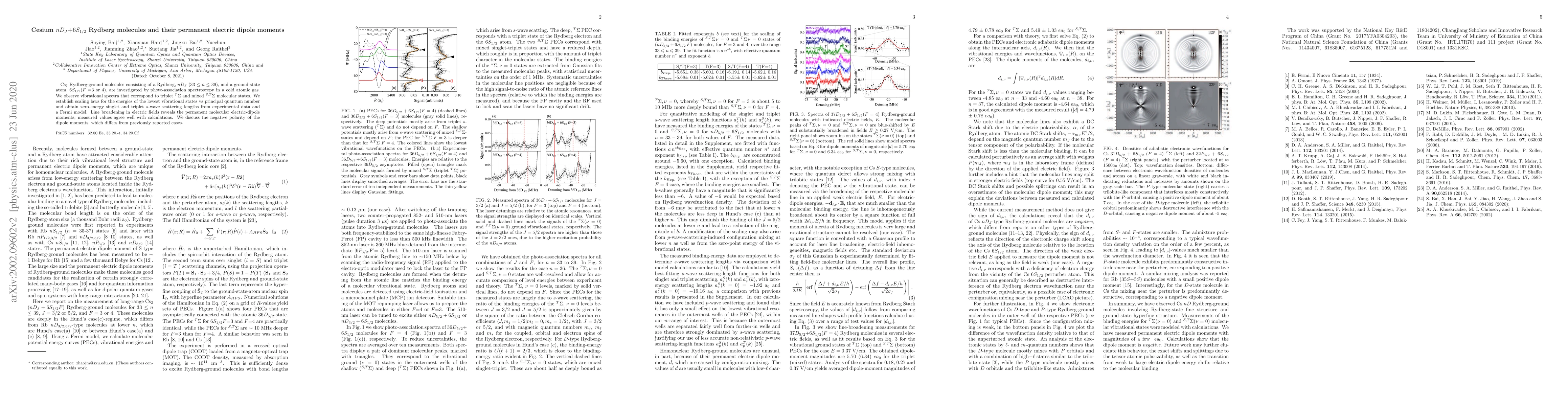 The work distinguishes itself by observing negatively polarized permanent electric dipole moments in Cs2 Rydberg-ground molecules, contrasting with previous reports of positive dipole moments in other molecular systems.