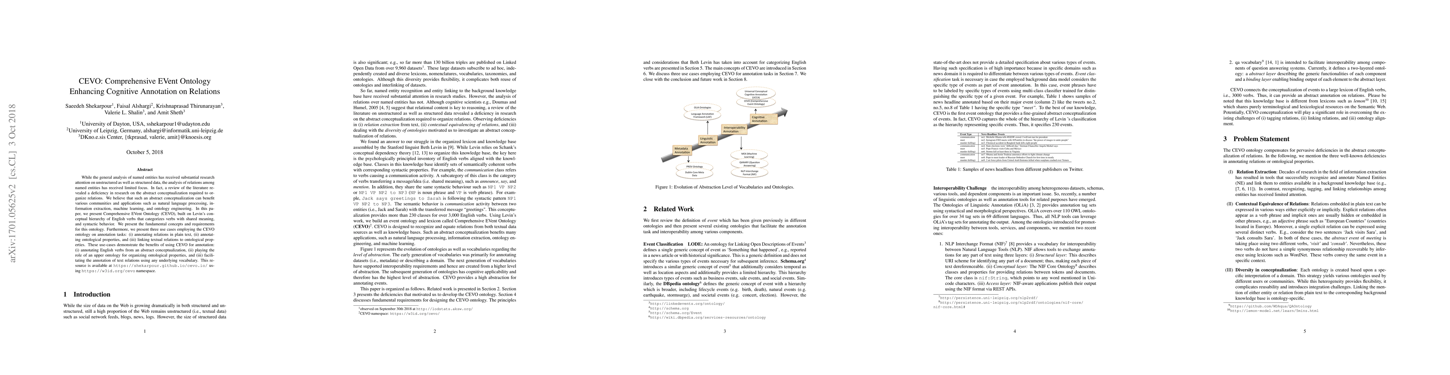 The paper introduces Comprehensive EVent Ontology (CEVO), an abstract conceptualization based on Levin's verb categorization, aimed at enhancing cognitive annotation in natural language processing. It demonstrates CEVO's utility through three use cases, showcasing its benefits in annotating relations, ontological properties, and linking textual relations to these properties.