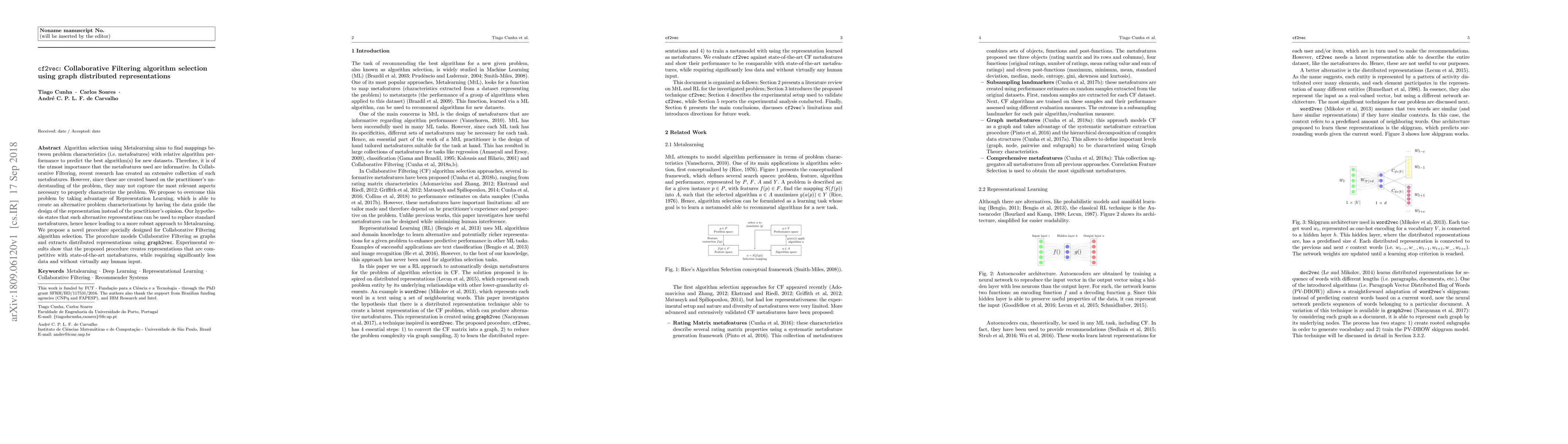 The paper proposes cf2vec, a novel method for Collaborative Filtering algorithm selection using graph distributed representations to create more informative problem characterizations. This approach aims to replace traditional metafeatures with data-driven representations, leading to a more robust and efficient metalearning process.