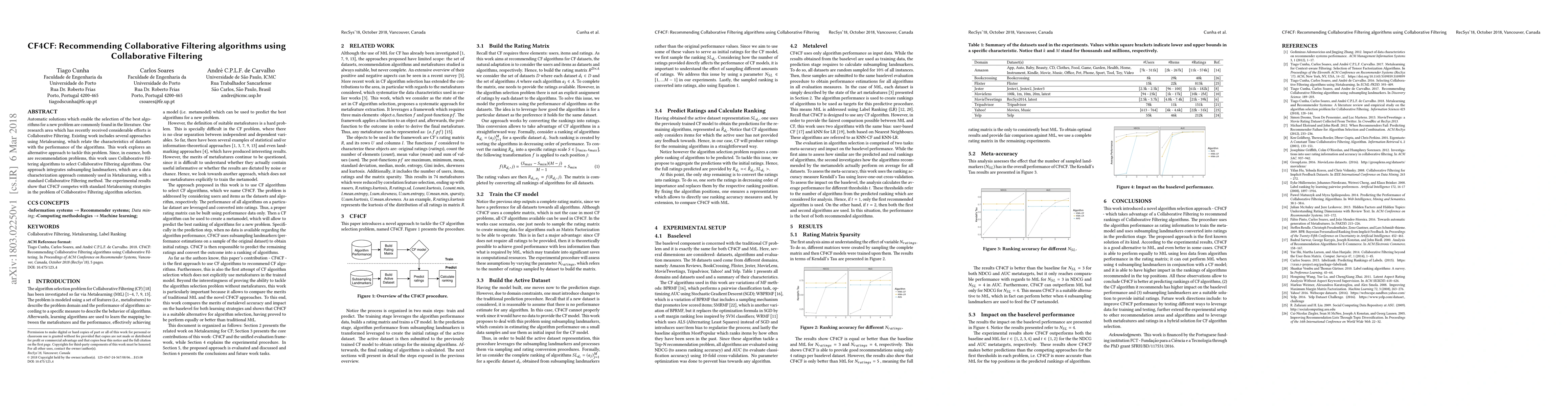 This paper proposes CF4CF, a novel method that uses Collaborative Filtering algorithms to recommend the best Collaborative Filtering algorithms for new problems, integrating subsampling landmarkers with standard Collaborative Filtering techniques. Experimental results demonstrate that CF4CF is competitive with standard Metalearning strategies for algorithm selection.