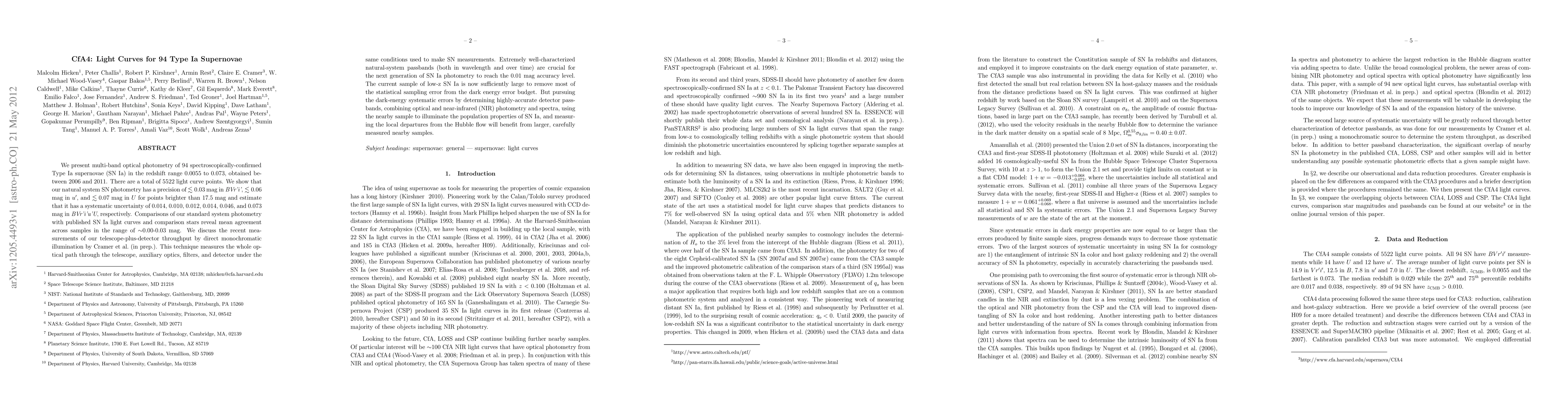 The paper presents a detailed analysis of multi-band optical photometry for 94 Type Ia supernovae, including the characterization of the precision and systematic uncertainties of the natural system SN photometry.