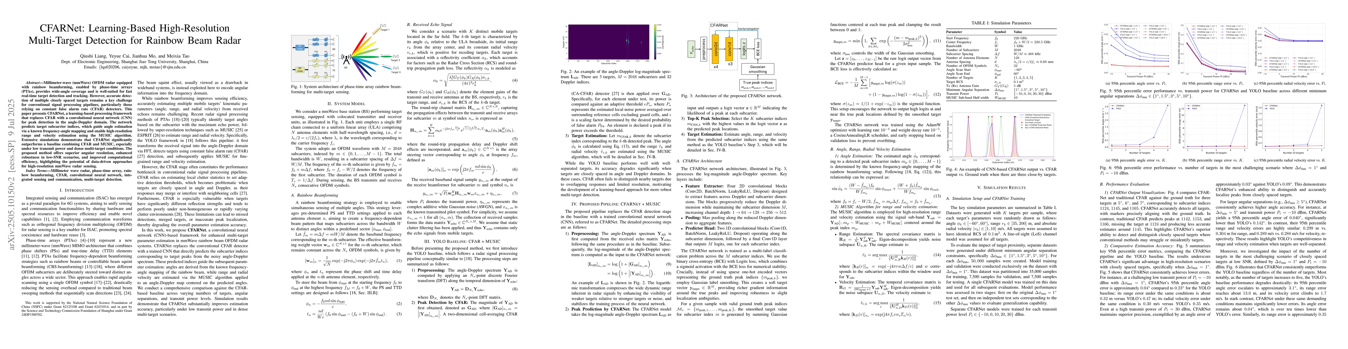 The research introduces CFARNet, a learning-based processing framework that utilizes a convolutional neural network (CNN) for peak detection in the angle-Doppler domain, replacing conventional CFAR detectors. The CNN predicts target subcarrier indices, which guide angle estimation and enable high-resolution range and velocity estimation using the MUSIC algorithm.