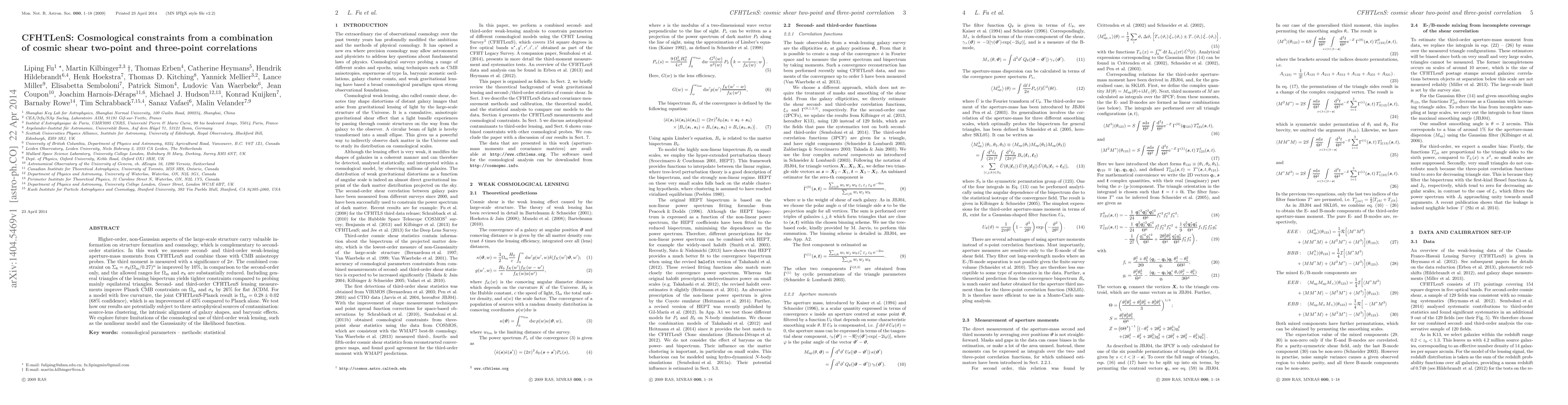 New cosmological constraints are derived from combining cosmic shear two-point and three-point correlations with CMB anisotropy probes, improving previous constraints on dark matter and dark energy.