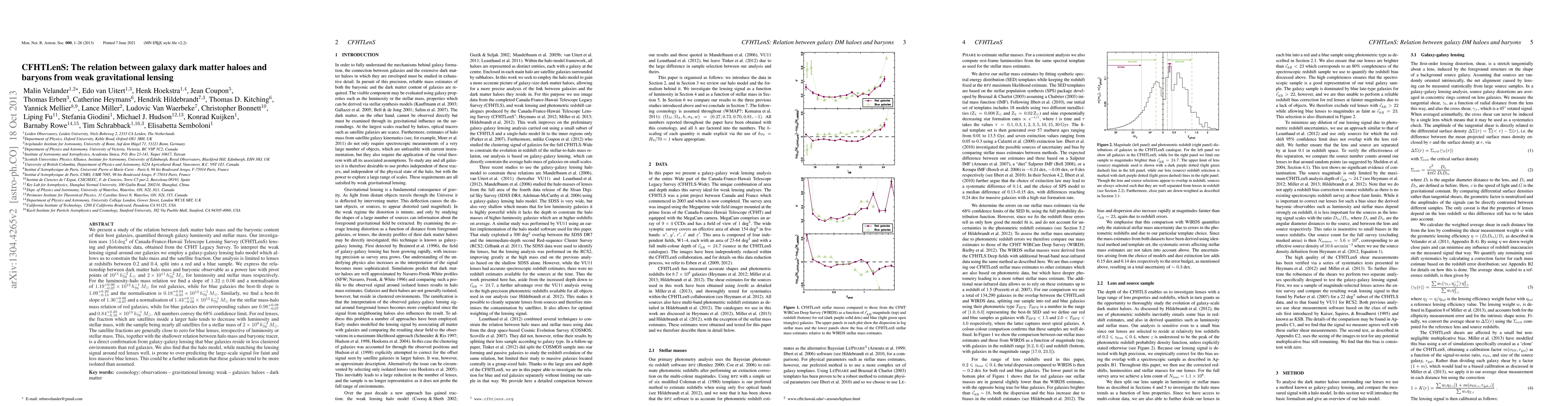 We present a study of the relation between dark matter halo mass and the baryonic content of host galaxies, quantified via luminosity and stellar mass. Our investigation uses 154 deg2 of Canada-France-Hawaii Telescope Lensing Survey (CFHTLenS) lensing and photometric data, obtained from the CFHT Legacy Survey. We employ a galaxy-galaxy lensing halo model which allows us to constrain the halo mass and the satellite fraction. Our analysis is limited to lenses at redshifts between 0.2 and 0.4. We express the relationship between halo mass and baryonic observable as a power law. For the luminosity-halo mass relation we find a slope of 1.32+/-0.06 and a normalisation of 1.19+0.06-0.07x10^13 h70^-1 Msun for red galaxies, while for blue galaxies the best-fit slope is 1.09+0.20-0.13 and the normalisation is 0.18+0.04-0.05x10^13 h70^-1 Msun. Similarly, we find a best-fit slope of 1.36+0.06-0.07 and a normalisation of 1.43+0.11-0.08x10^13 h70^-1 Msun for the stellar mass-halo mass relation of red galaxies, while for blue galaxies the corresponding values are 0.98+0.08-0.07 and 0.84+0.20-0.16x10^13 h70^-1 Msun. For red lenses, the fraction which are satellites tends to decrease with luminosity and stellar mass, with the sample being nearly all satellites for a stellar mass of 2x10^9 h70^-2 Msun. The satellite fractions are generally close to zero for blue lenses, irrespective of luminosity or stellar mass. This, together with the shallower relation between halo mass and baryonic tracer, is a direct confirmation from galaxy-galaxy lensing that blue galaxies reside in less clustered environments than red galaxies. We also find that the halo model, while matching the lensing signal around red lenses well, is prone to over-predicting the large-scale signal for faint and less massive blue lenses. This could be a further indication that these galaxies tend to be more isolated than assumed. [abridged]