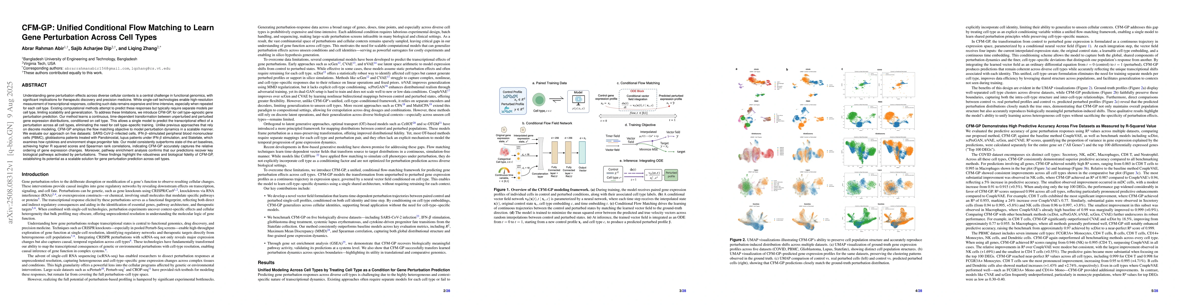 Understanding gene perturbation effects across diverse cellular contexts is a central challenge in functional genomics, with important implications for therapeutic discovery and precision medicine. Single-cell technologies enable high-resolution measurement of transcriptional responses, but collecting such data is costly and time-consuming, especially when repeated for each cell type. Existing computational methods often require separate models per cell type, limiting scalability and generalization. We present CFM-GP, a method for cell type-agnostic gene perturbation prediction. CFM-GP learns a continuous, time-dependent transformation between unperturbed and perturbed gene expression distributions, conditioned on cell type, allowing a single model to predict across all cell types. Unlike prior approaches that use discrete modeling, CFM-GP employs a flow matching objective to capture perturbation dynamics in a scalable manner. We evaluate on five datasets: SARS-CoV-2 infection, IFN-beta stimulated PBMCs, glioblastoma treated with Panobinostat, lupus under IFN-beta stimulation, and Statefate progenitor fate mapping. CFM-GP consistently outperforms state-of-the-art baselines in R-squared and Spearman correlation, and pathway enrichment analysis confirms recovery of key biological pathways. These results demonstrate the robustness and biological fidelity of CFM-GP as a scalable solution for cross-cell type gene perturbation prediction.