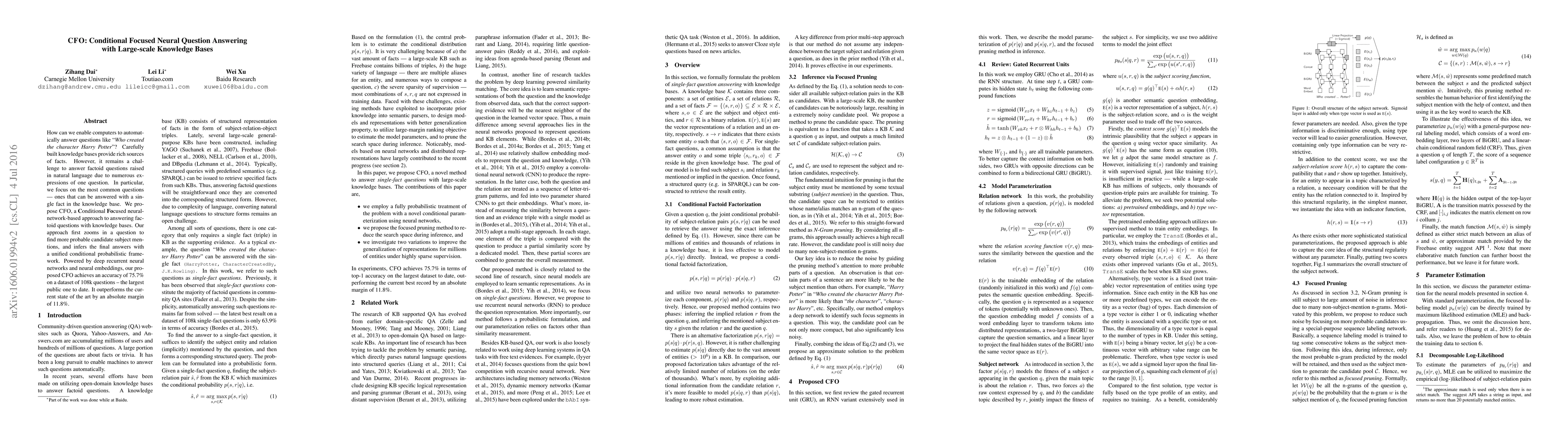 A new approach called CFO achieves 75.7% accuracy in answering factoid questions using large-scale knowledge bases, outperforming the current state of the art by 11.8%.
