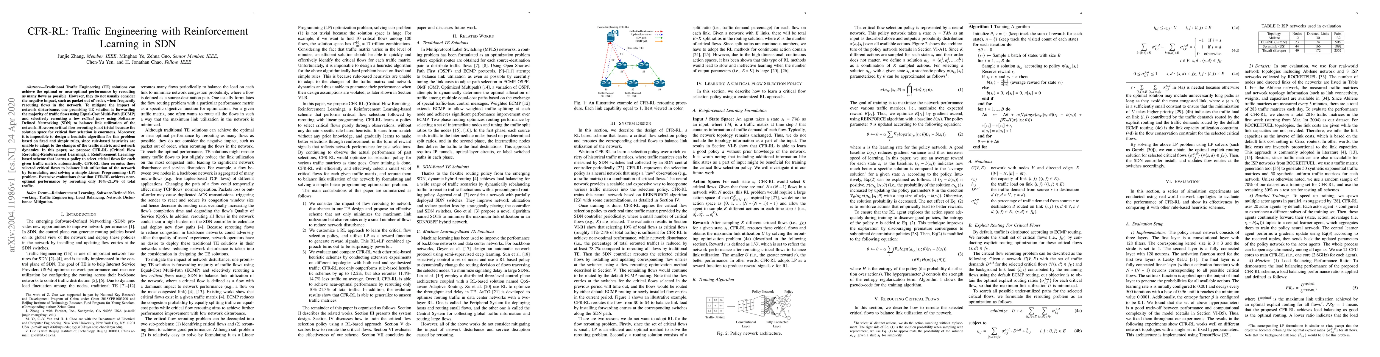 Traditional Traffic Engineering (TE) solutions can achieve the optimal or near-optimal performance by rerouting as many flows as possible. However, they do not usually consider the negative impact, such as packet out of order, when frequently rerouting flows in the network. To mitigate the impact of network disturbance, one promising TE solution is forwarding the majority of traffic flows using Equal-Cost Multi-Path (ECMP) and selectively rerouting a few critical flows using Software-Defined Networking (SDN) to balance link utilization of the network. However, critical flow rerouting is not trivial because the solution space for critical flow selection is enormous. Moreover, it is impossible to design a heuristic algorithm for this problem based on fixed and simple rules, since rule-based heuristics are unable to adapt to the changes of the traffic matrix and network dynamics. In this paper, we propose CFR-RL (Critical Flow Rerouting-Reinforcement Learning), a Reinforcement Learning-based scheme that learns a policy to select critical flows for each given traffic matrix automatically. CFR-RL then reroutes these selected critical flows to balance link utilization of the network by formulating and solving a simple Linear Programming (LP) problem. Extensive evaluations show that CFR-RL achieves near-optimal performance by rerouting only 10%-21.3% of total traffic.