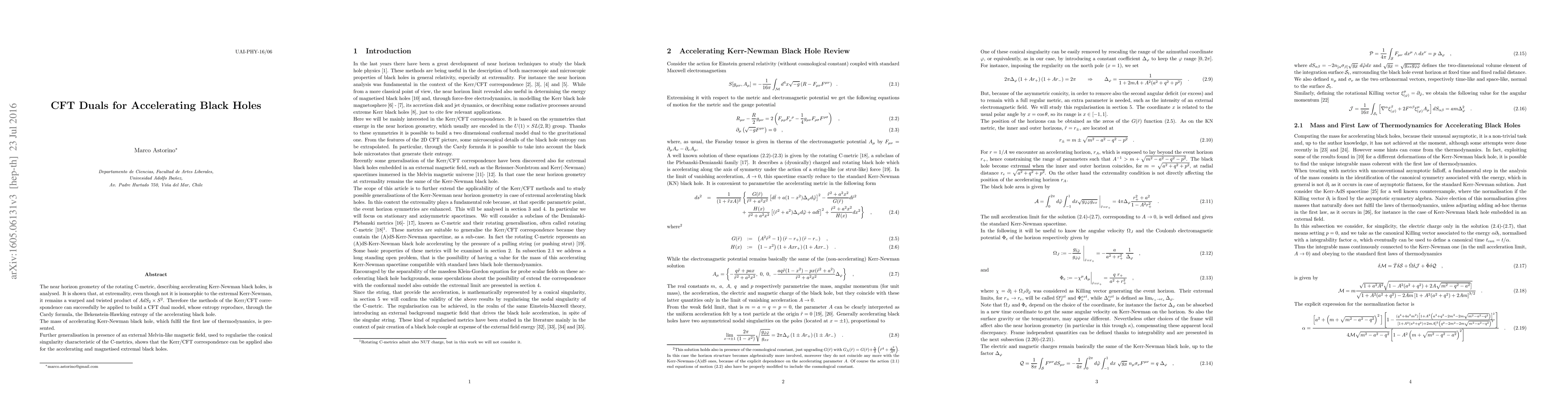 The near horizon geometry of the rotating C-metric, describing accelerating Kerr-Newman black holes, is analysed. It is shown that, at extremality, even though not it is isomorphic to the extremal Kerr-Newman, it remains a warped and twisted product of $AdS_2 \times S^2$. Therefore the methods of the Kerr/CFT correspondence can successfully be applied to build a CFT dual model, whose entropy reproduce, through the Cardy formula, the Beckenstein-Hawking entropy of the accelerating black hole. The mass of accelerating Kerr-Newman black hole, which fulfil the first law of thermodynamics, is presented. Further generalisation in presence of an external Melvin-like magnetic field, used to regularise the conical singularity characteristic of the C-metrics, shows that the Kerr/CFT correspondence can be applied also for the accelerating and magnetised extremal black holes.