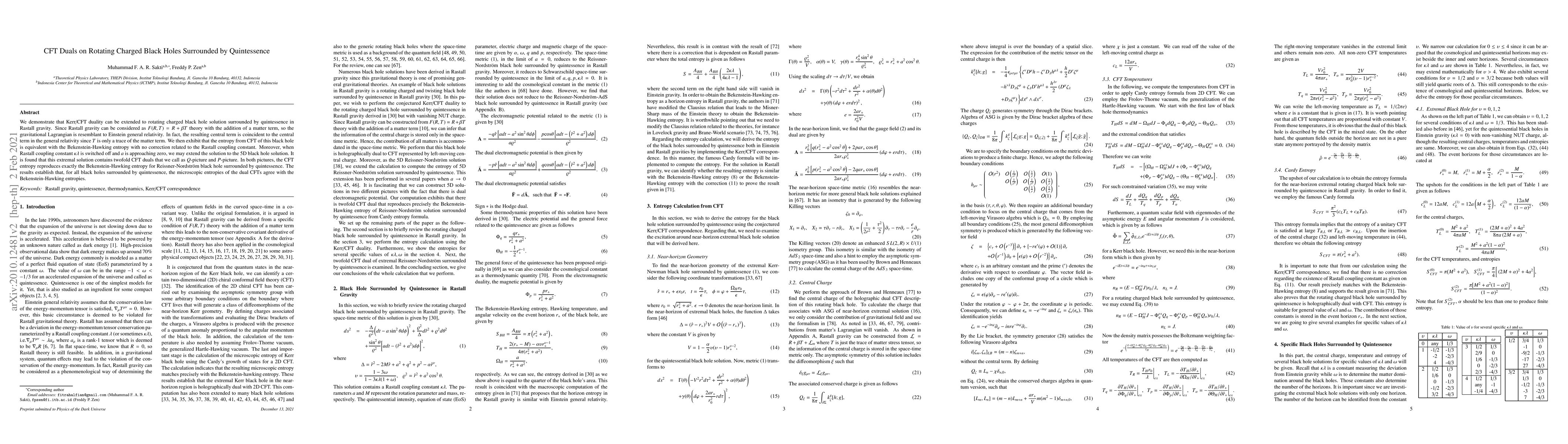 We demonstrate that Kerr/CFT duality can be extended to rotating charged black hole solution surrounded by quintessence in Rastall gravity. Since Rastall gravity can be considered as $F(R,T) = R + \beta T $ theory with the addition of a matter term, so the gravitational Lagrangian is resemblant to Einstein general relativity. In fact, the resulting central term is coincident to the central term in the general relativity since $ T $ is only a trace of the matter term. We then exhibit that the entropy from CFT of this black hole is equivalent with the Bekenstein-Hawking entropy with no correction related to the Rastall coupling constant. Moreover, when Rastall coupling constant $ \kappa \lambda $ is switched off and $ a $ is approaching zero, we may extend the solution to the 5D black hole solution. It is found that this extremal solution contains twofold CFT duals that we call as $Q$-picture and $ P $-picture. In both pictures, the CFT entropy reproduces exactly the Bekenstein-Hawking entropy for Reissner-Nordstr\"om black hole surrounded by quintessence. The results establish that, for all black holes surrounded by quintessence, the microscopic entropies of the dual CFTs agree with the Bekenstein-Hawking entropies.