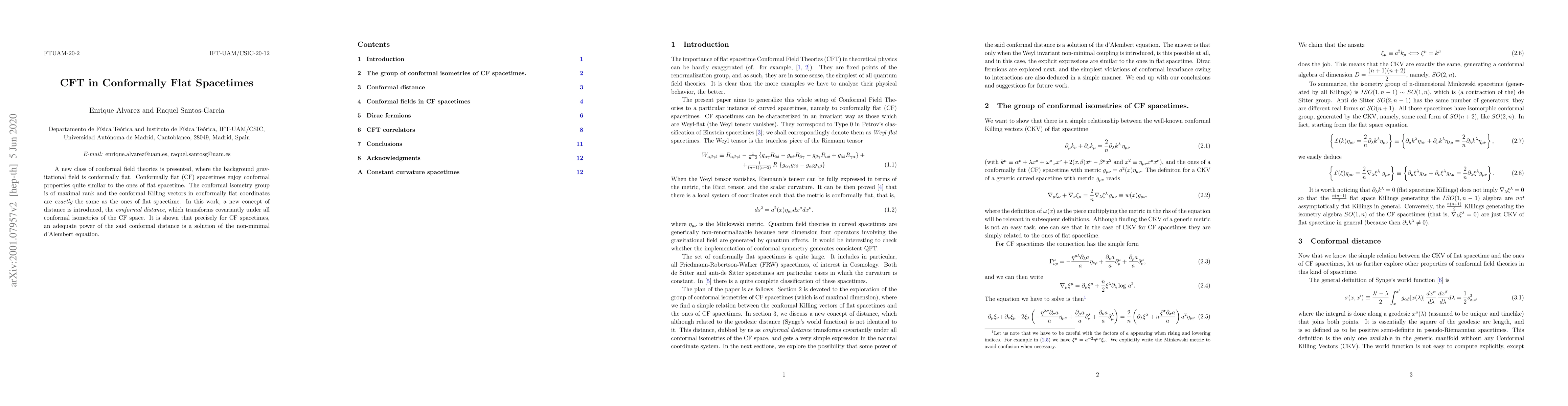 This paper introduces a new class of conformal field theories set in conformally flat spacetimes, highlighting that these spaces have conformal properties akin to flat spacetimes. It presents a novel concept of conformal distance that remains covariant under conformal isometries and demonstrates that a specific power of this distance solves the non-minimal d'Alembert equation.