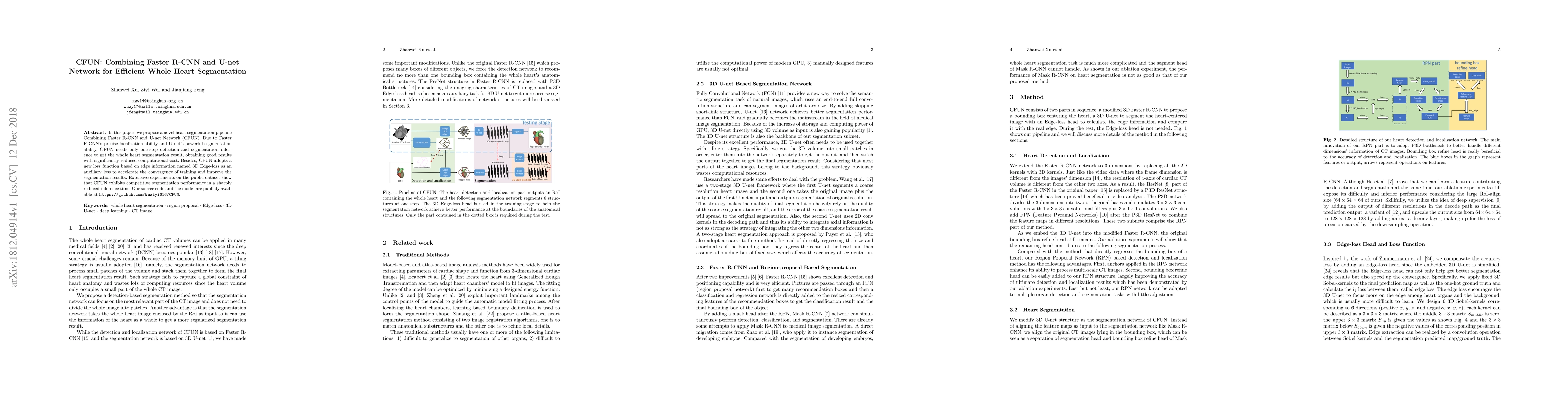 This paper introduces CFUN, a novel segmentation pipeline combining Faster R-CNN and U-net for efficient whole heart segmentation. CFUN leverages Faster R-CNN for precise localization and U-net for detailed segmentation in a single step, significantly reducing computational cost while maintaining high performance.