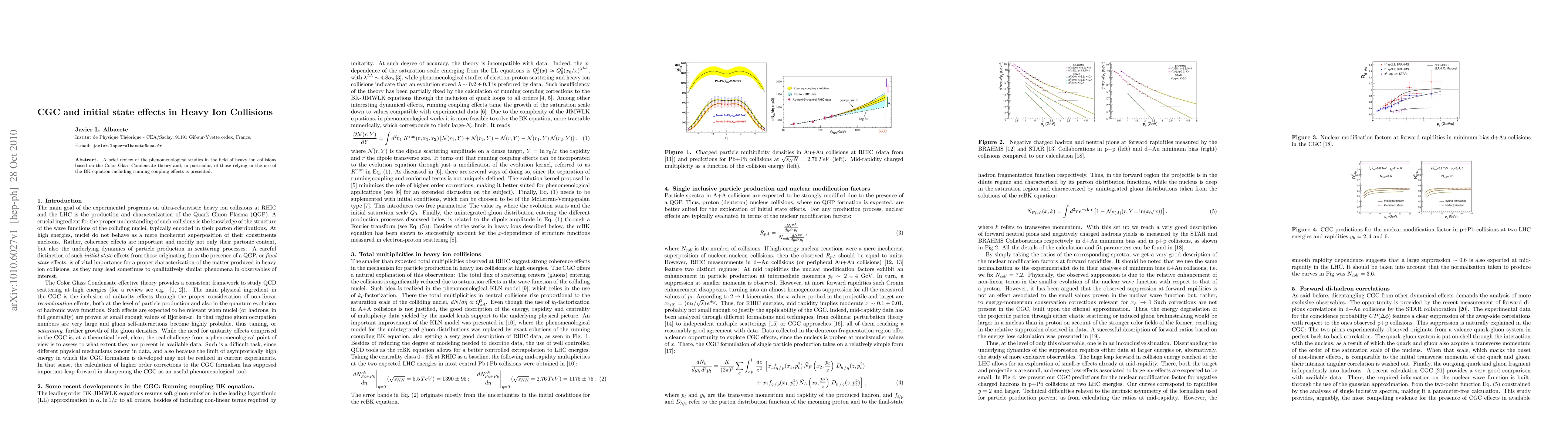 A brief review of the phenomenological studies in the field of heavy ion collisions based on the Color Glass Condensate theory and, in particular, of those relying in the use of the BK equation including running coupling effects is presented.